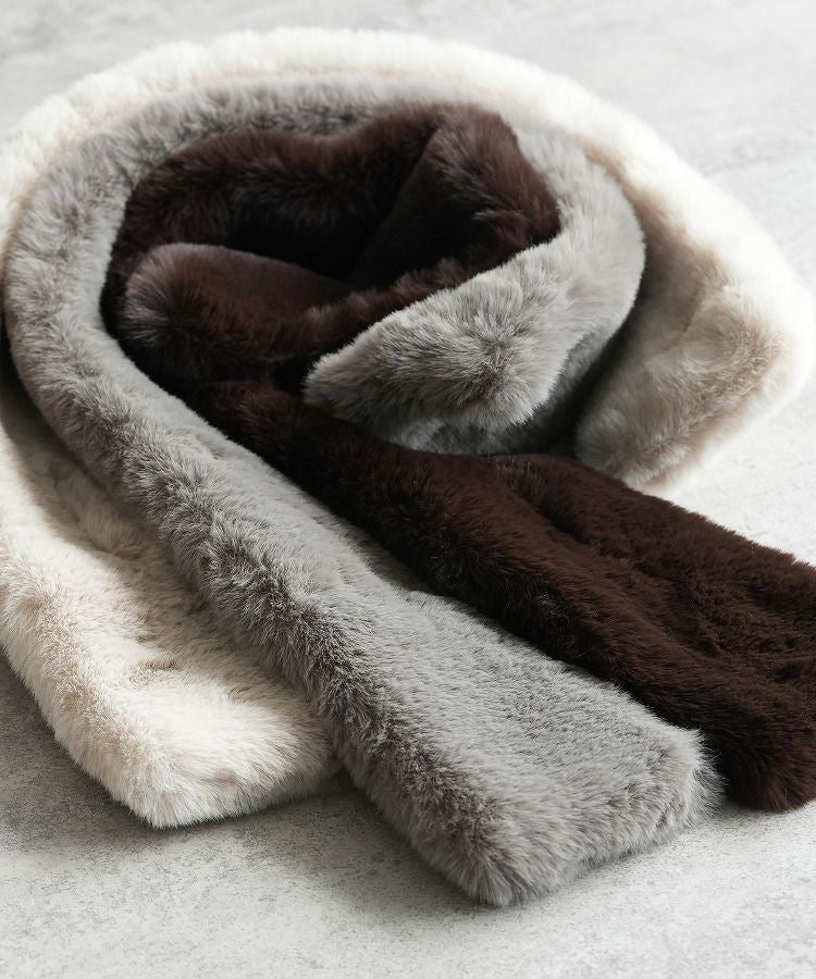 レディース シンプル カジュアル きれいめ フォーマル オフィス マフラー 差し込みマフラー ティペット ふわふわ 防寒 軽量 上品 秋 冬 大人女子 30代ファッション 30代コーデ 40代コーデ 50代コーデ ママ オシャレ ファッション小物 ブラウン ベージュ チャコール