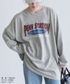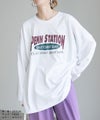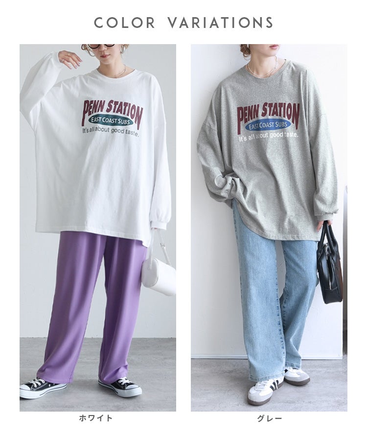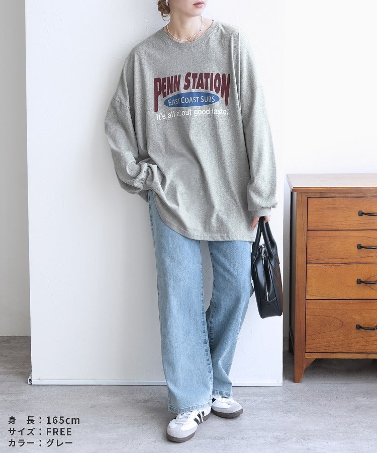 レディース トップス プルオーバー Tシャツ ロンT ロゴT ロゴ プリントロゴ オーバーサイズ ビッグサイズ メンズライク ヴィンテージ 秋 長袖 クルーネック 丸首 カジュアル シンプル 大人女子 30代ファッション 30代コーデ プリント オートミール ホワイト 白 ブラック 黒 グレー