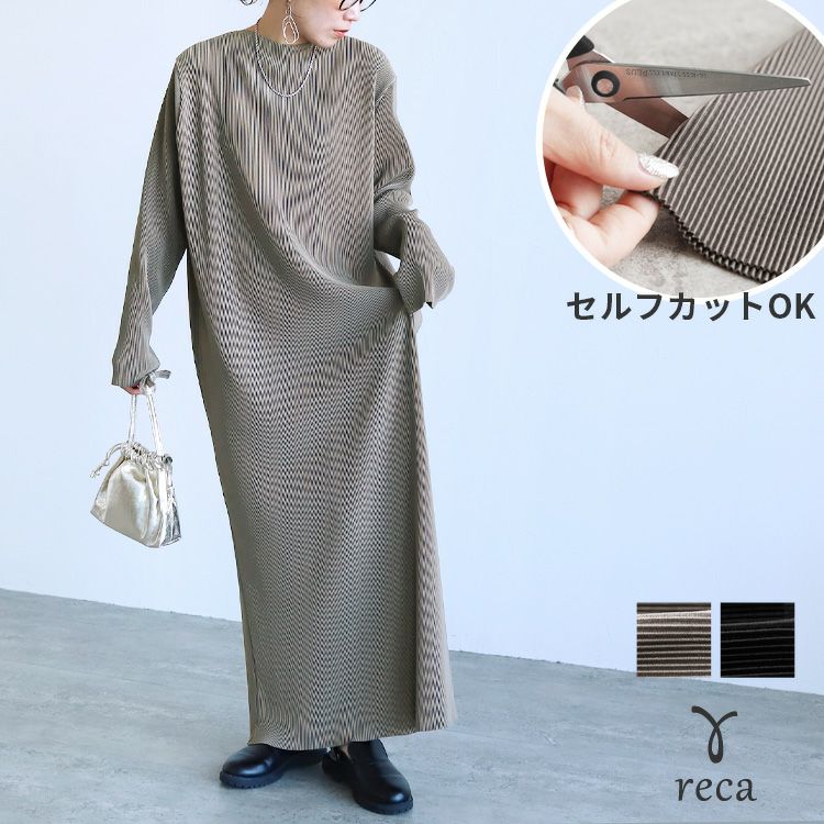 セルフカット長袖マキシプリーツワンピース(bel-blc-6404) 宅配便発送