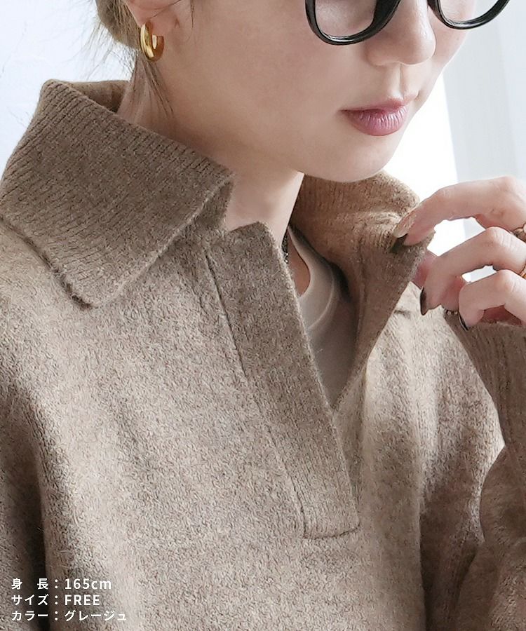 襟付きスキッパーニット(bel-db-25039) 宅配便発送