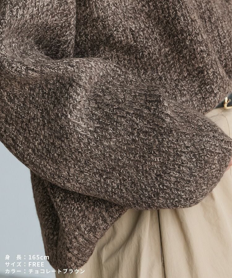 レディース トップス ニット セーター プルオーバー ボリューム袖 たぽん袖 たぷん袖 長袖 ミックス糸 楽ちん 柔らか やわらか 体型カバー オーバーサイズ ゆったり カジュアル キレイめ シンプル 大人女子 30代ファッション 30代コーデ 無地 ニュアンス ブラウン ネイビー