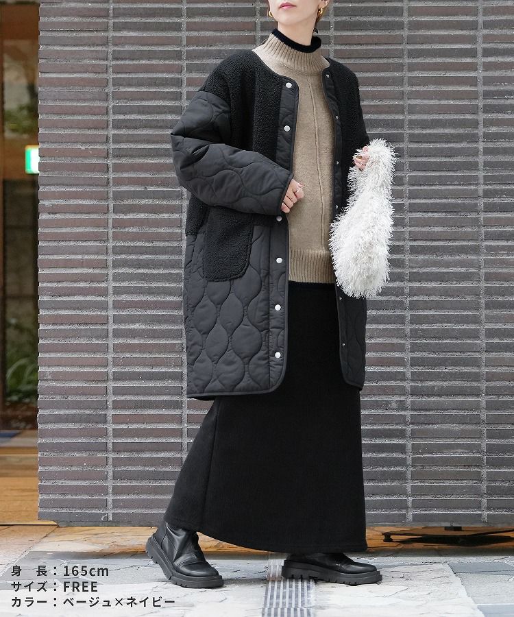 コーデアイテム: ノーカラーボア×ひょうたんキルトコート /裏起毛ボンディングタイトスカート