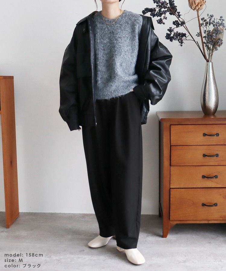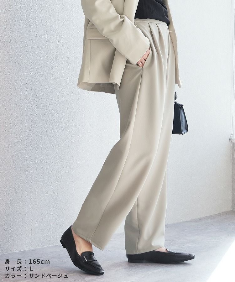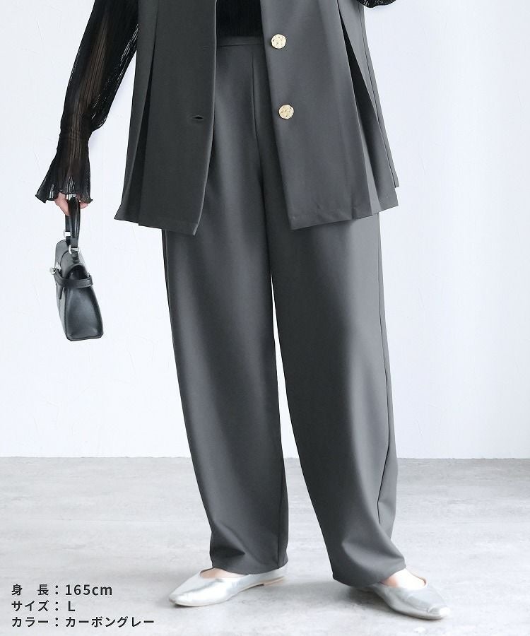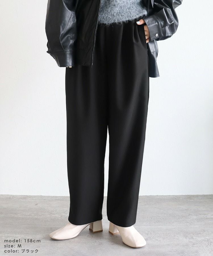 レディース ボトムス パンツ カーブパンツ タック ツータック セミワイド ツイル 細見 すっきり 落ち感 ウエストバックゴム カジュアル きれいめ シンプル 大人女子 30代ファッション 30代コーデ 着回し 楽ちん 無地 ブラック 黒 ブラウン グレー