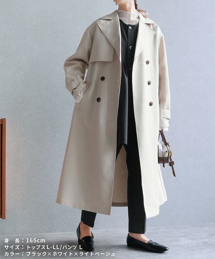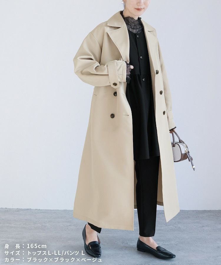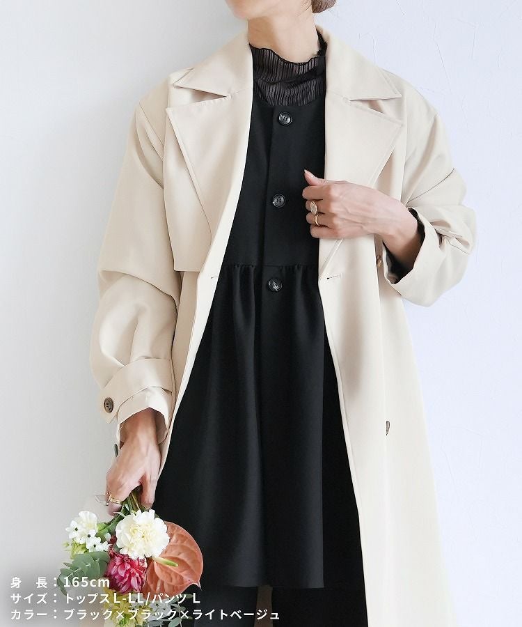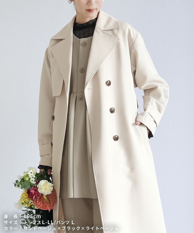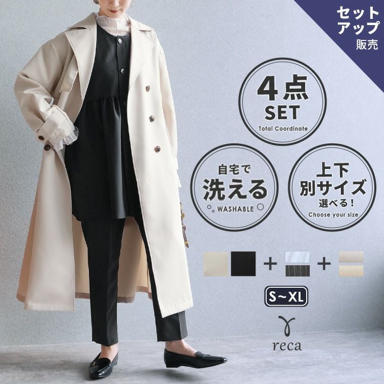 ペプラムベスト×テーパードパンツ×トップス×トレンチコートセット(bel-hr-0616-s2) 宅配便発送