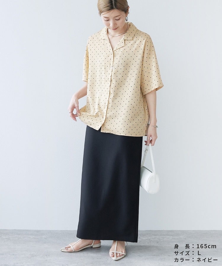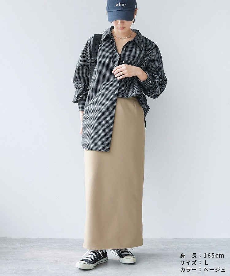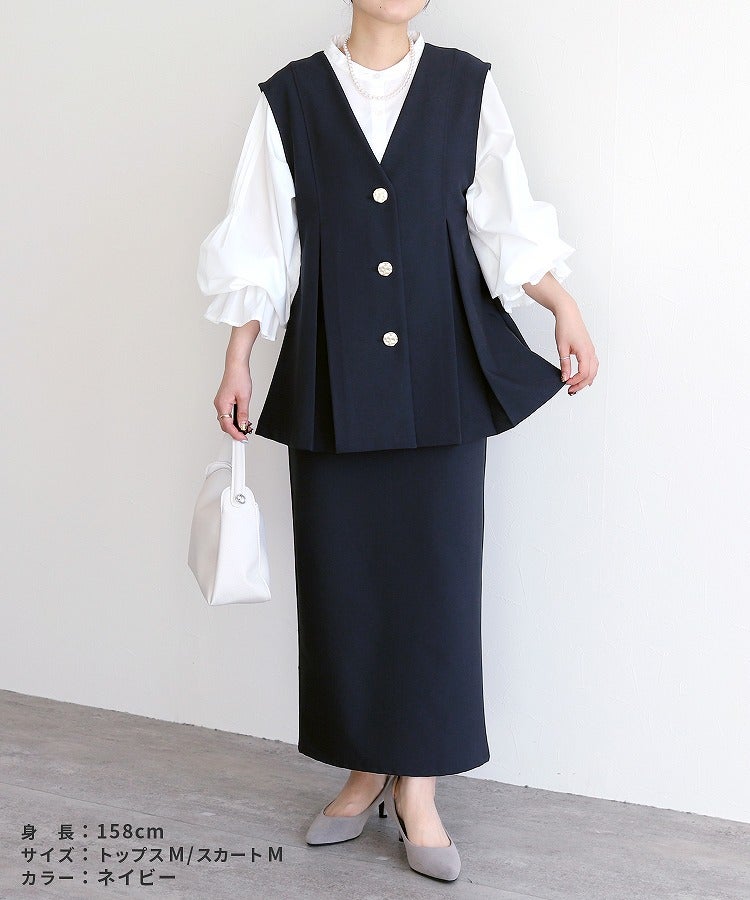 セットアップ販売: Vネックボタンベスト×Hラインロングスカート