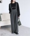レディース サロペット オーバーオール カジュアル シンプル パンツ ポケット レイヤード ワイド 着回し ハイウエスト タック きれいめ スタイルアップ 大人女子 30代ファッション 30代コーデ グレー ブラック 灰色 黒