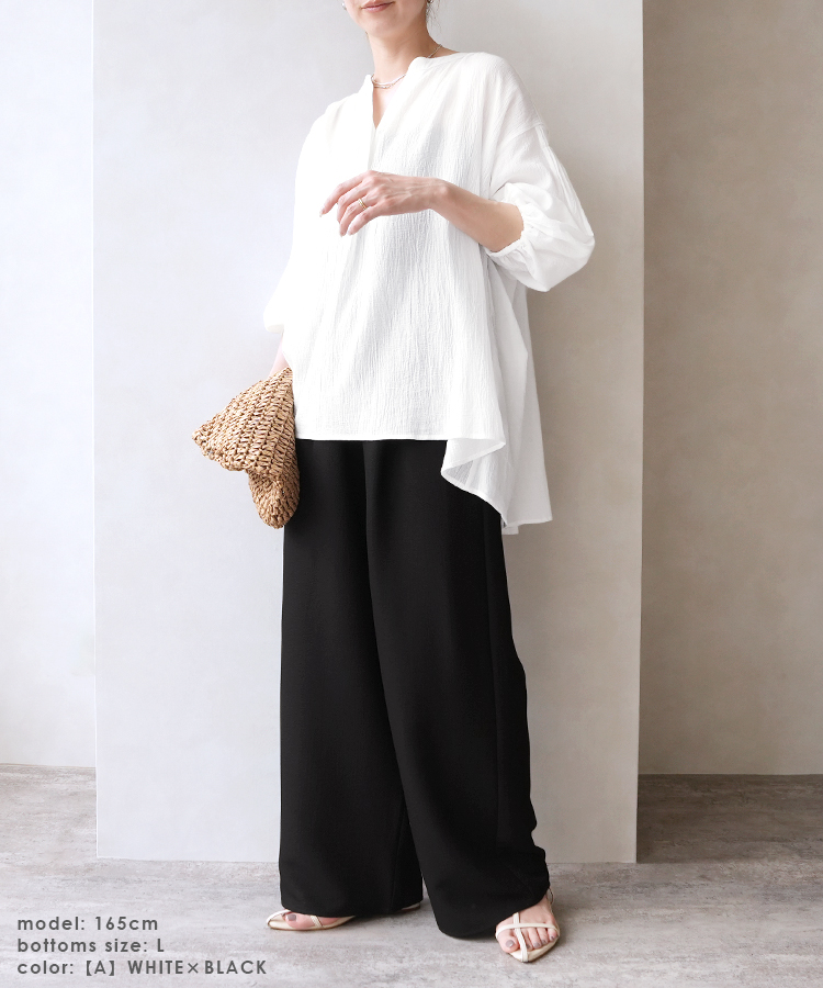 【Official限定】スキッパーブラウス×エンボスパンツセットcode-33宅配便発送(dec-cm-1003/y2819)