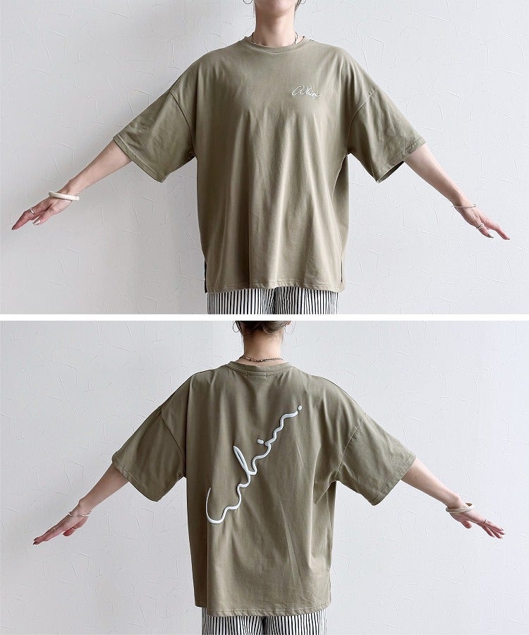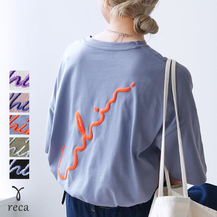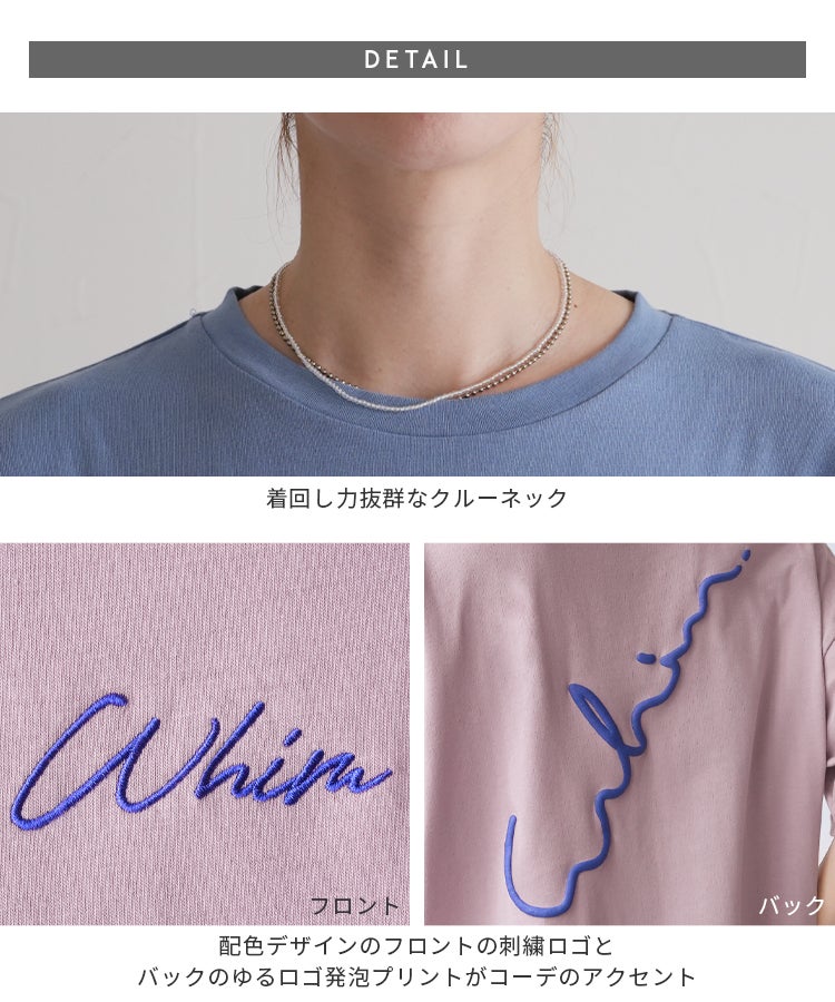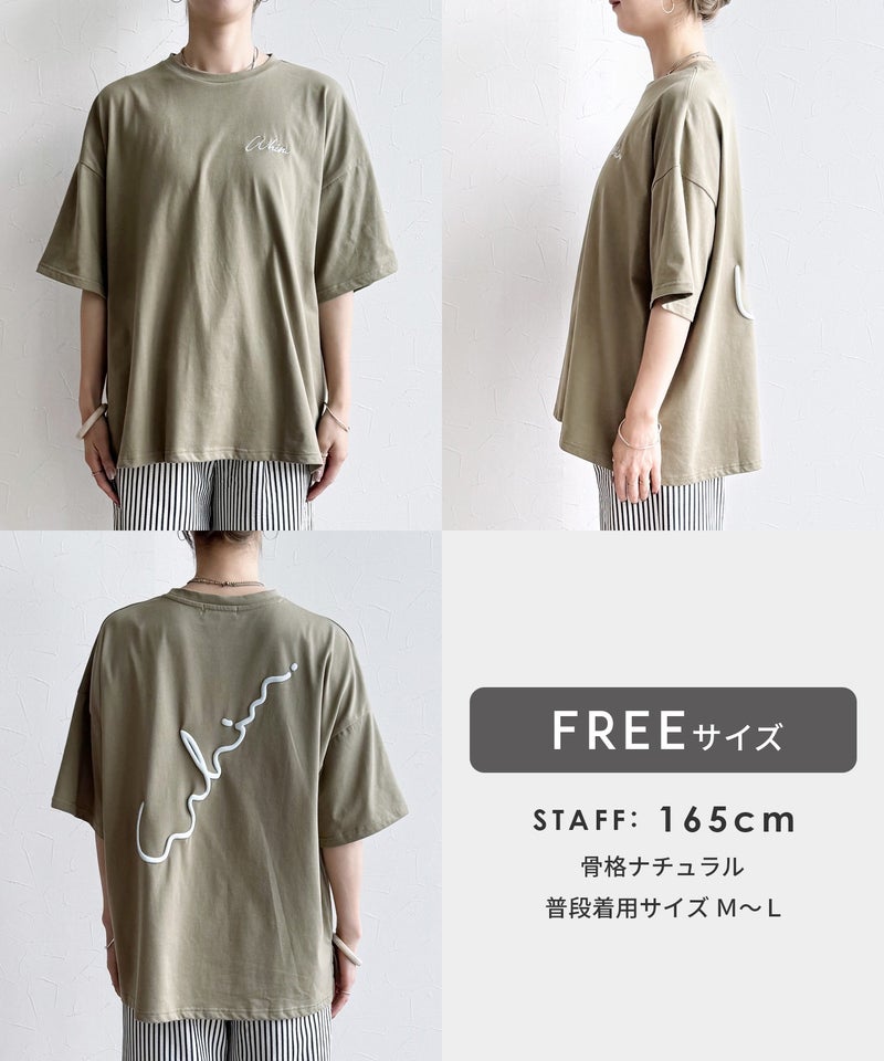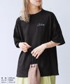 レディース トップス Tシャツ ロゴTシャツ ロゴT カットソー ビッグT ビッグTシャツ プルオーバー ロゴ刺繍 筆記体ロゴ 筆記体 ロゴ 発泡プリント 発泡 プリント 前後ロゴ ワンポイント 半袖 クルーネック 丸首 カジュアル シンプル 大人女子 30代ファッション 30代コーデ プリント オフホワイト ホワイト 白 ブラック 黒 ターキーブルー ブルー 青 バーガンディ 赤 カーキ カーキグリーン くすみカラー バイカラー 配色 配色ロゴ