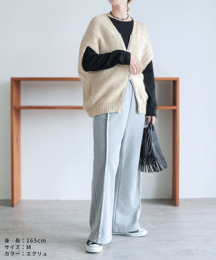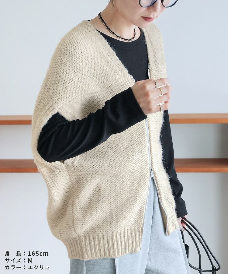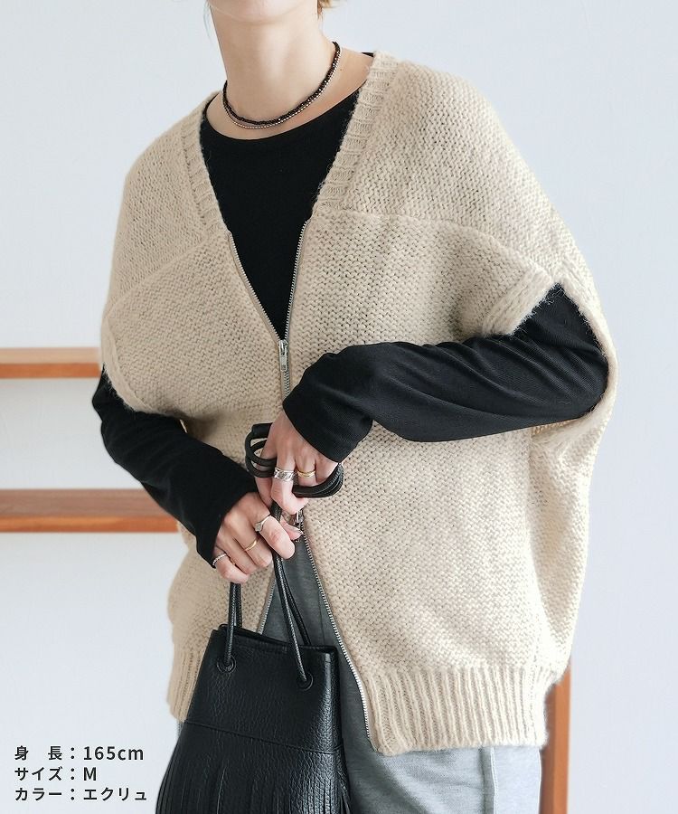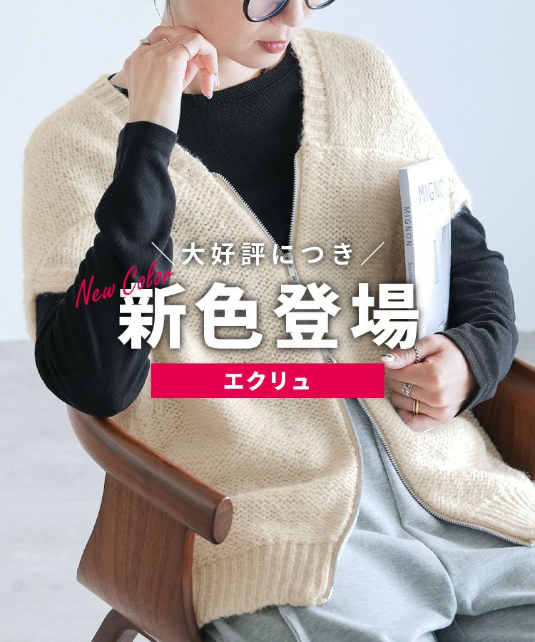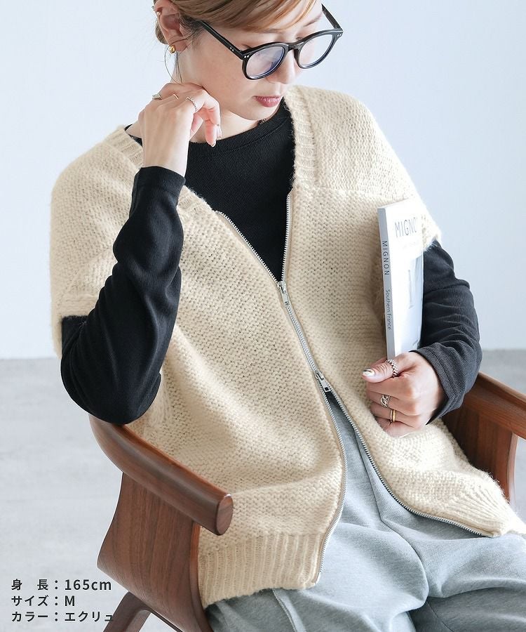 レディース トップス ニット ベスト ダブルジップ ファスナー ミックス糸 ミックスカラー カジュアル シンプル 楽ちん 大人女子 30代ファッション 30代コーデ ミックスグレー ブラック エクリュ