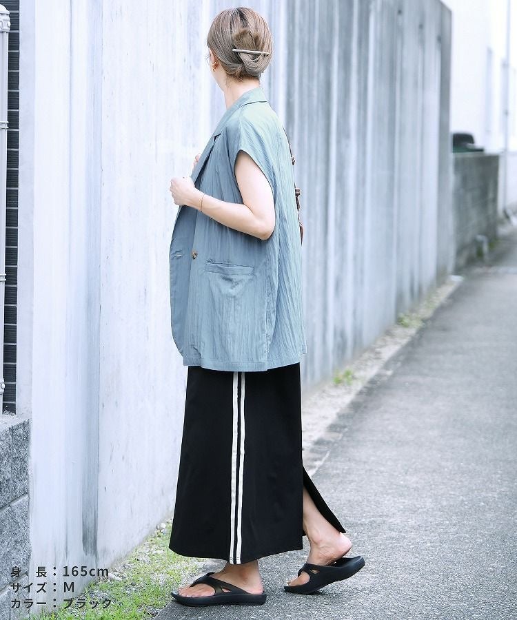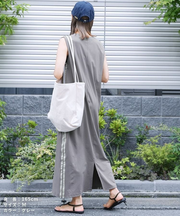 レディース 2025年夏新作 ワンピース ロング マキシ ノースリーブ サイドライン カジュアル シンプル 楽ちん 夏 大人女子 30代ファッション 30代コーデ ブラック グレー