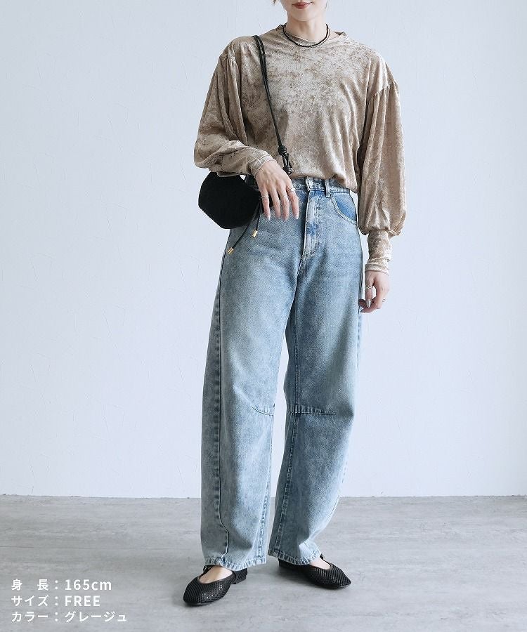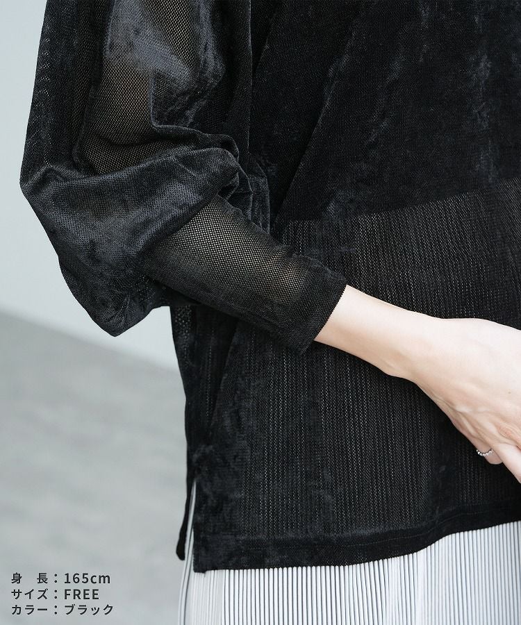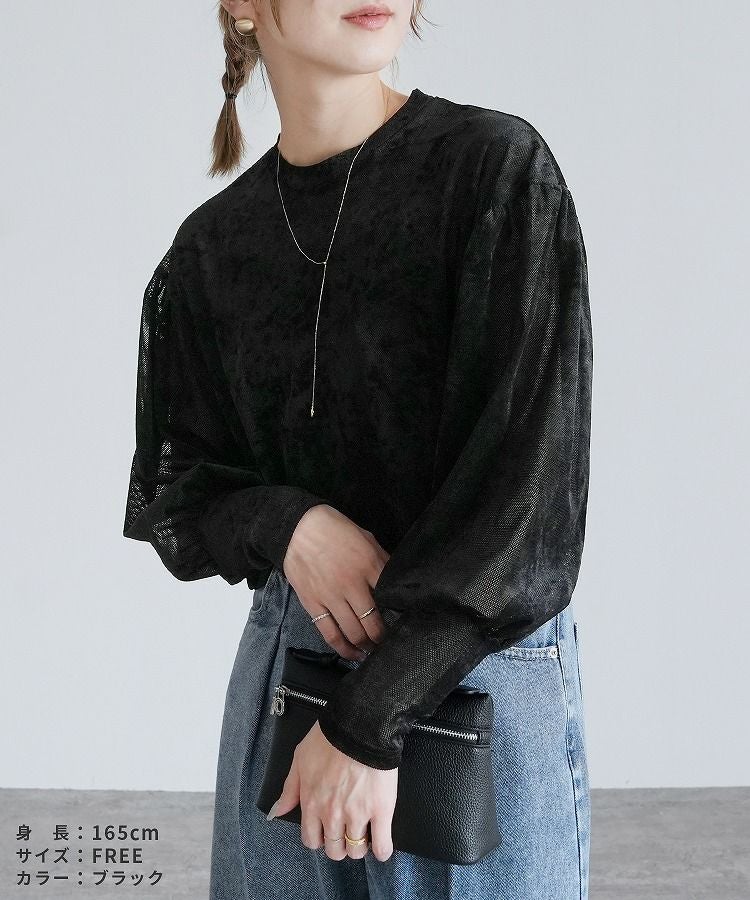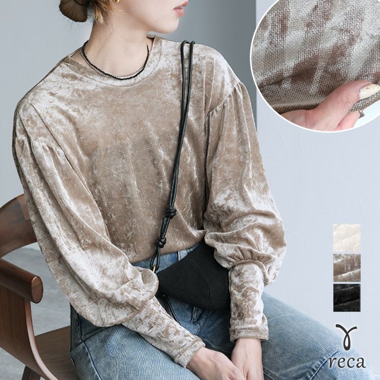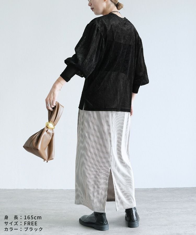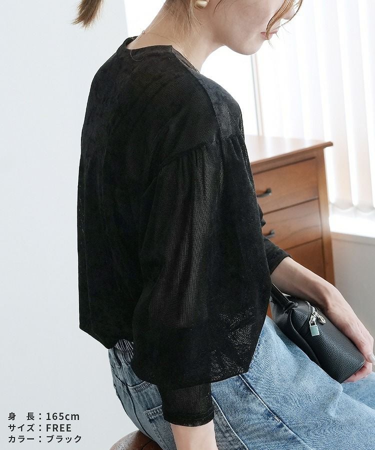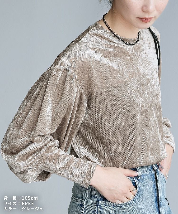 ベロア風シアーパフスリーブプルオーバー(hi285846) ネコポス発送10