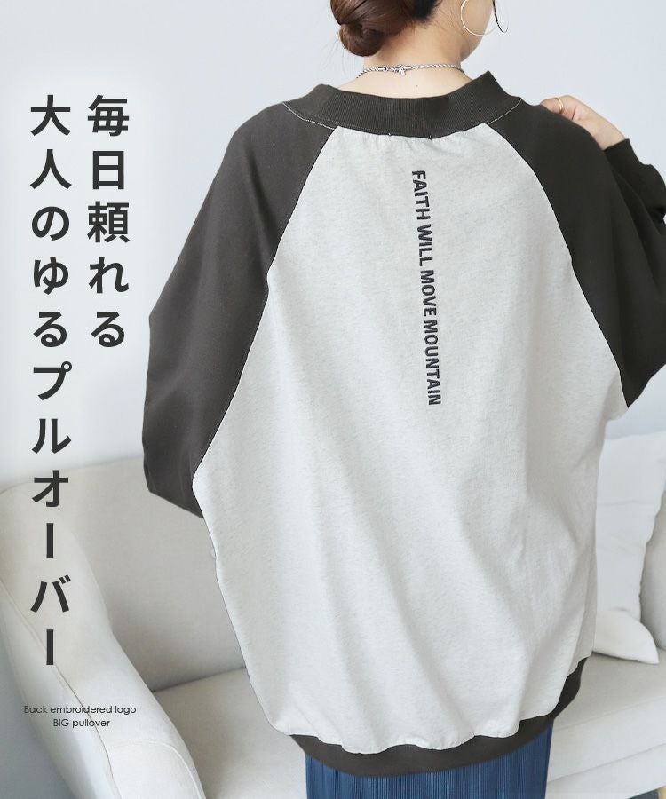レディース トップス スウェット トレーナー プルオーバー オーバーサイズ ビッグシルエット メンズライク ロゴ ロゴ刺繍 ロゴスウェット ロゴT バックロゴ ワンポイント 長袖 クルーネック 丸首 カジュアル シンプル 大人女子 30代ファッション 30代コーデ 40代ファッション 40代コーデ 配色 バイカラー ママ 女性 ブラック 黒 ベージュ ブラウン チャコール グレー ブルー イエロー