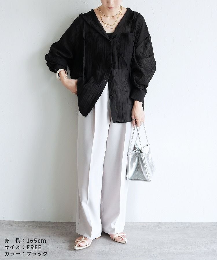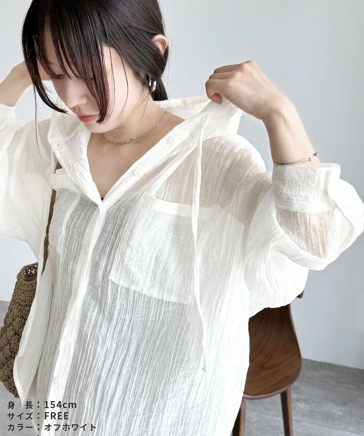 クリンクル加工フード付きシアーシャツ(p247505)ネコポス発送10