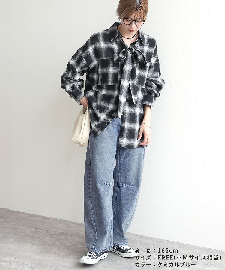 コーデアイテム: ボウタイ付きチェック柄オーバーサイズシャツ