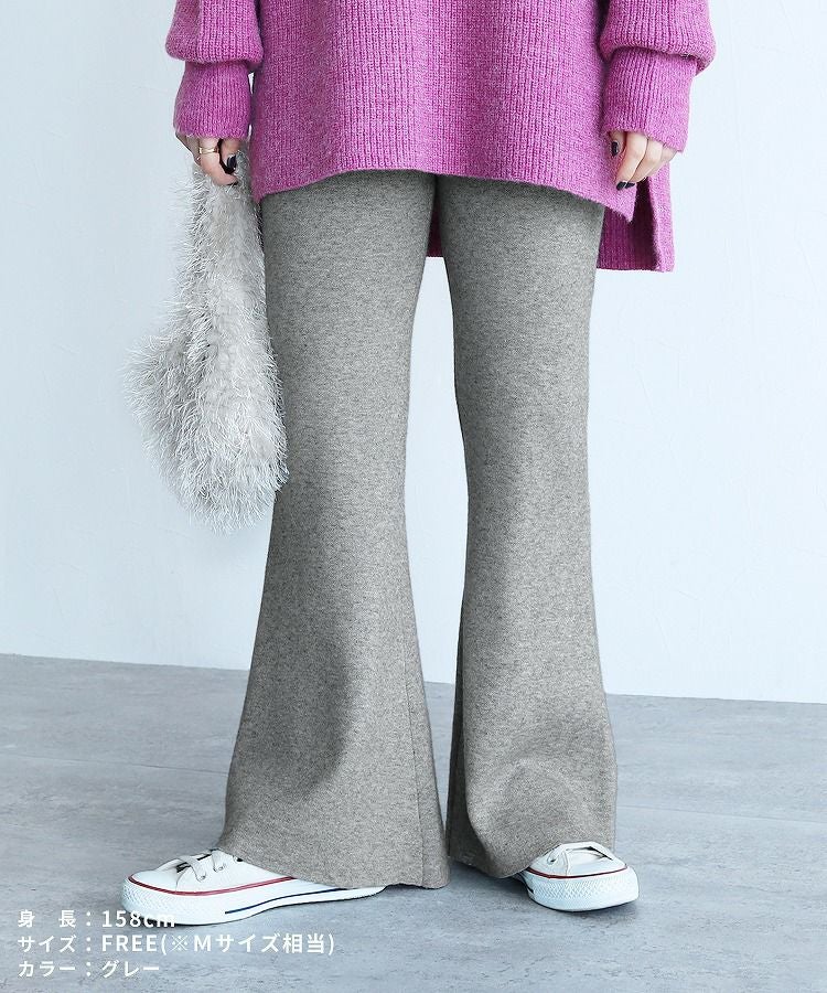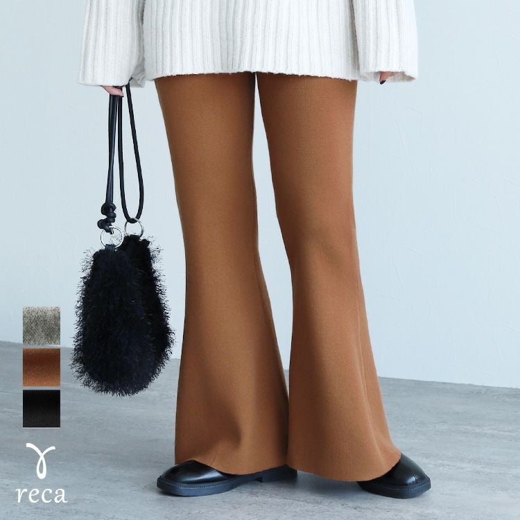 レディース ボトムス パンツ フレアパンツ ニットパンツ ニット ウエストゴム 伸縮性 楽ちん ストレッチ カジュアル 上品 キレイめ シンプル 秋 冬 大人女子 30代ファッション 30代コーデ ブラック 黒 キャメル グレー