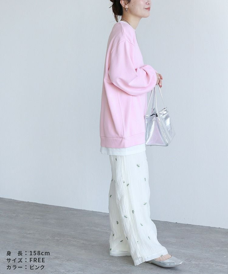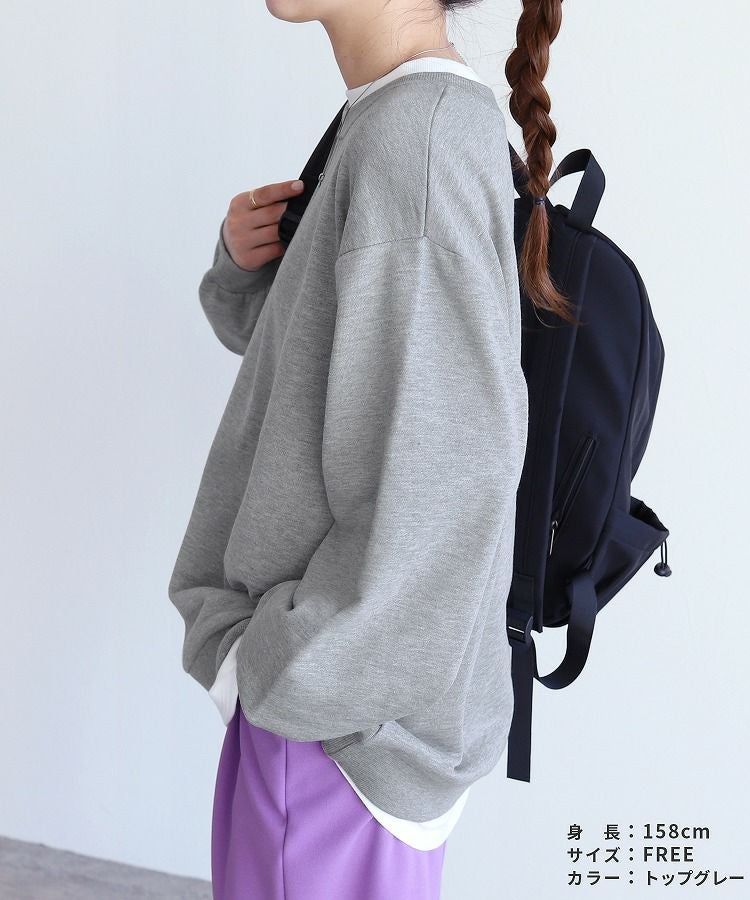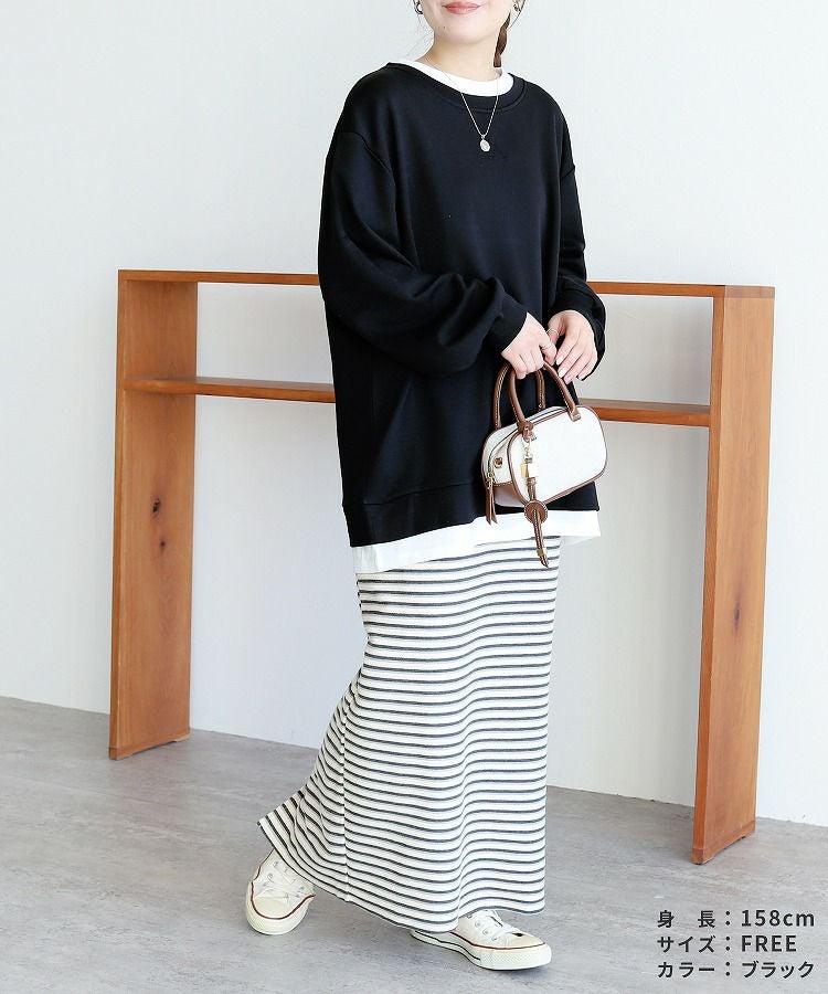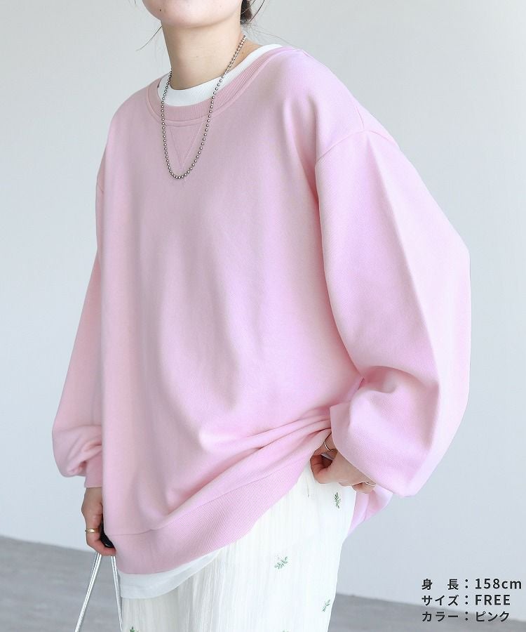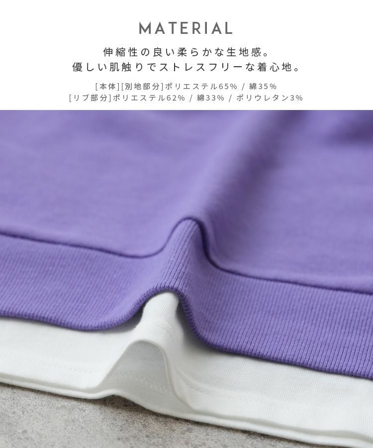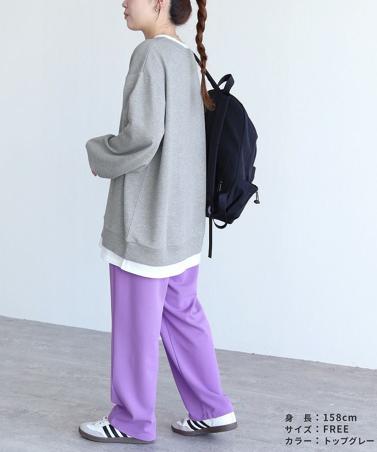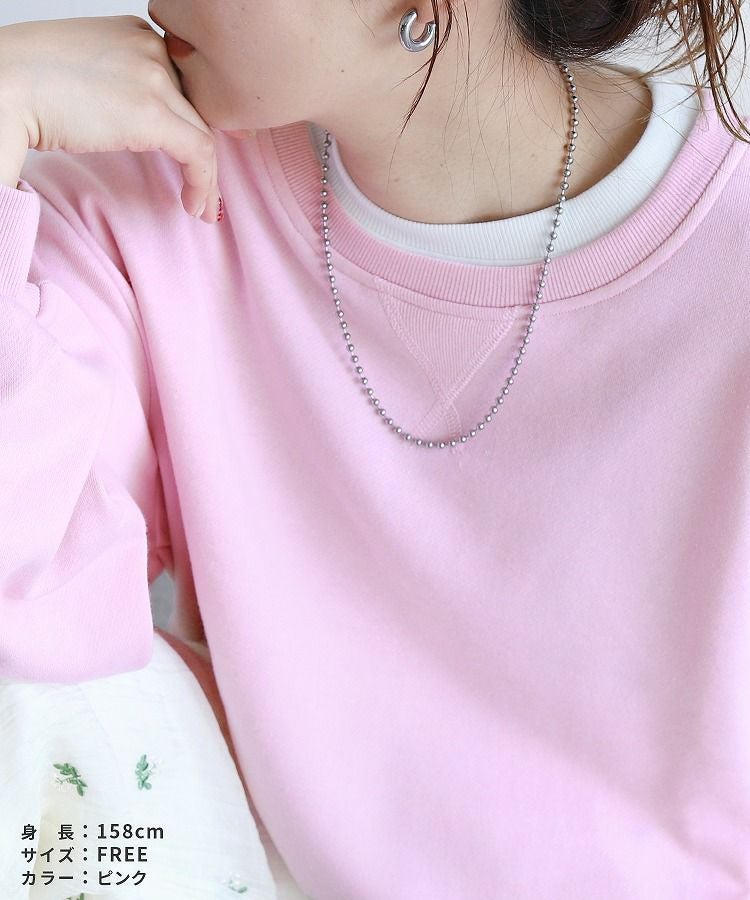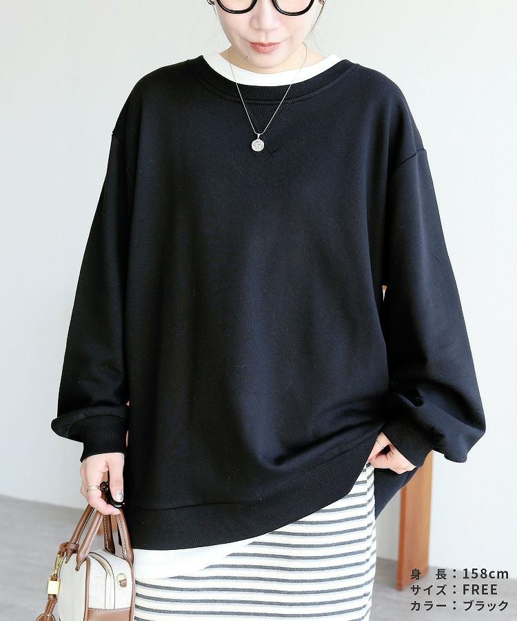 レディース シンプル カジュアル スウェット トレーナー プルオーバー トップス 長袖 重ね着 レイヤード風 楽ちん ゆったり 着回し 春 秋 大人女子 30代ファッション 30代コーデ 40代コーデ ママ 母 ママコーデ 黒 ブラック グレー ピンク パープル