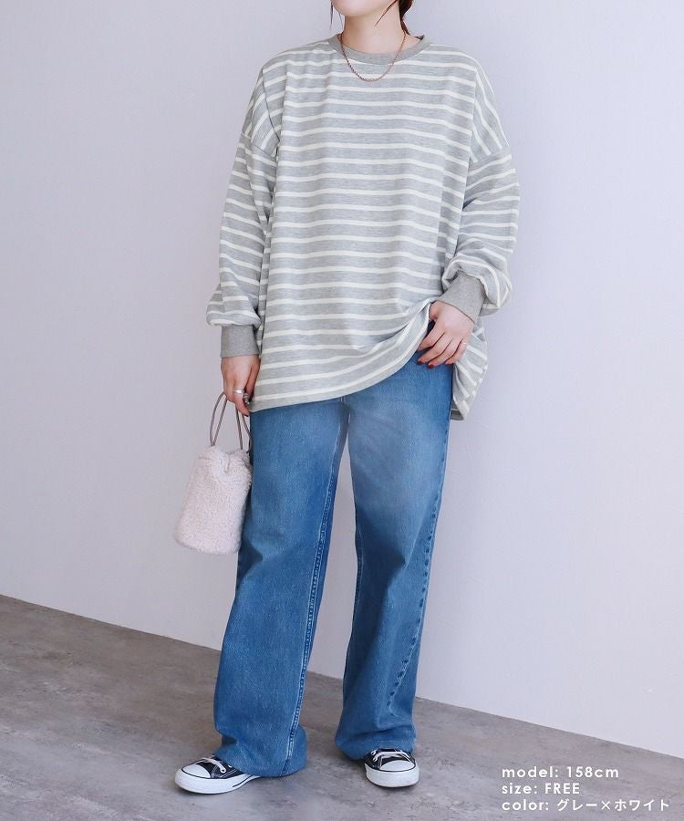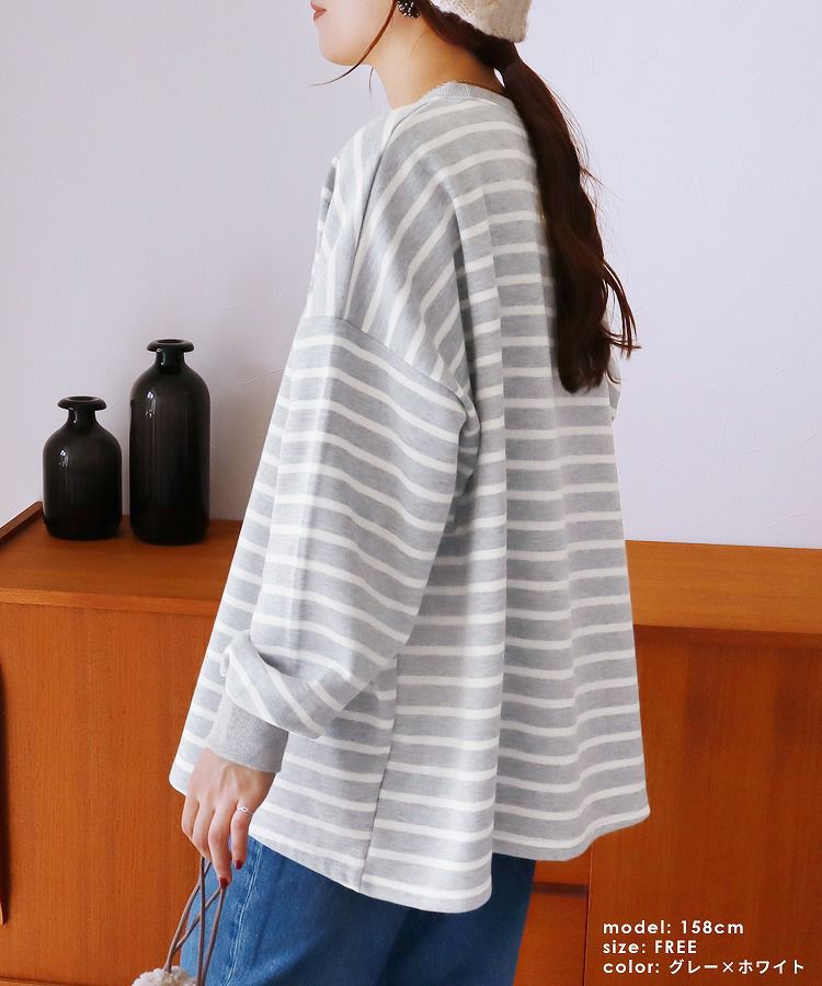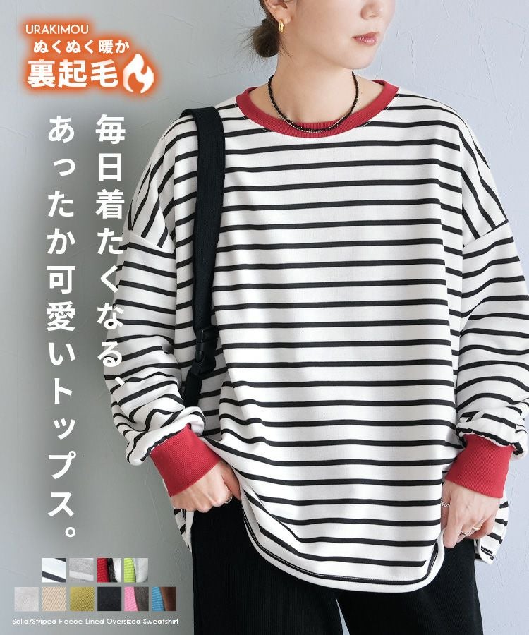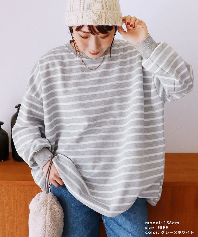 新色追加☆無地/ボーダー裏起毛ビッグプルオーバー(R21249-v・R21250-v) ネコポス発送10