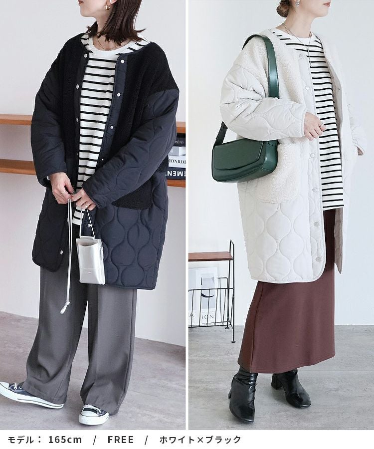 コーデアイテム: ノーカラーボア×ひょうたんキルトコート
