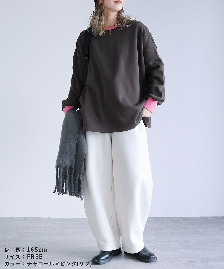 右コーデアイテム: 裏起毛ボンディングセミワイドリブパンツ