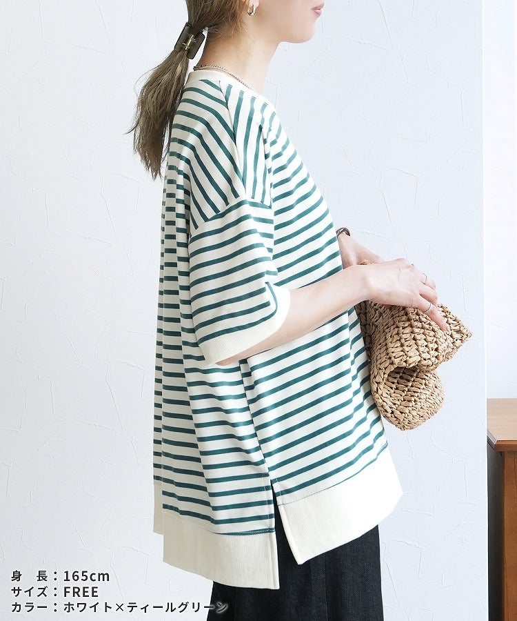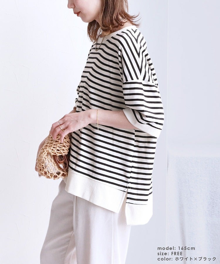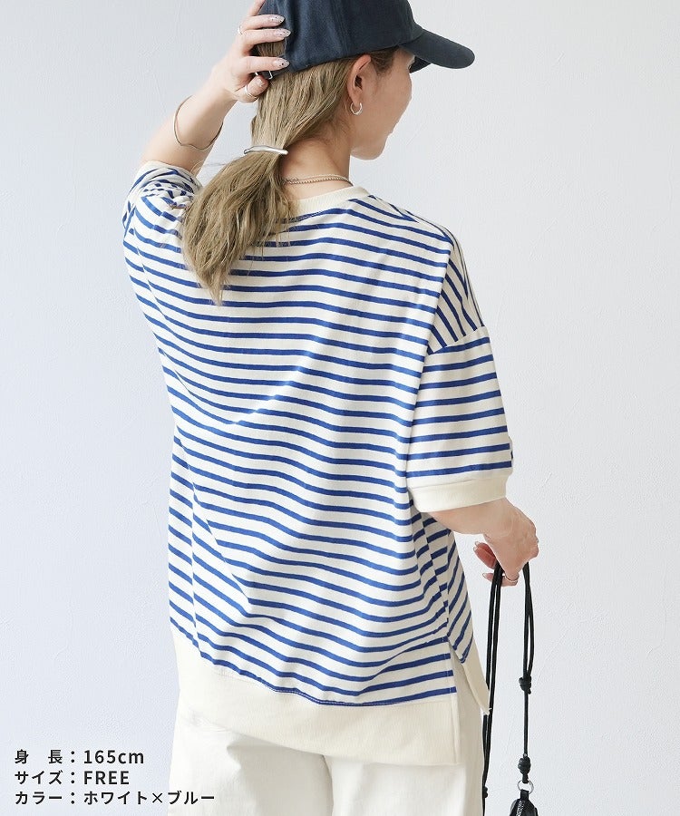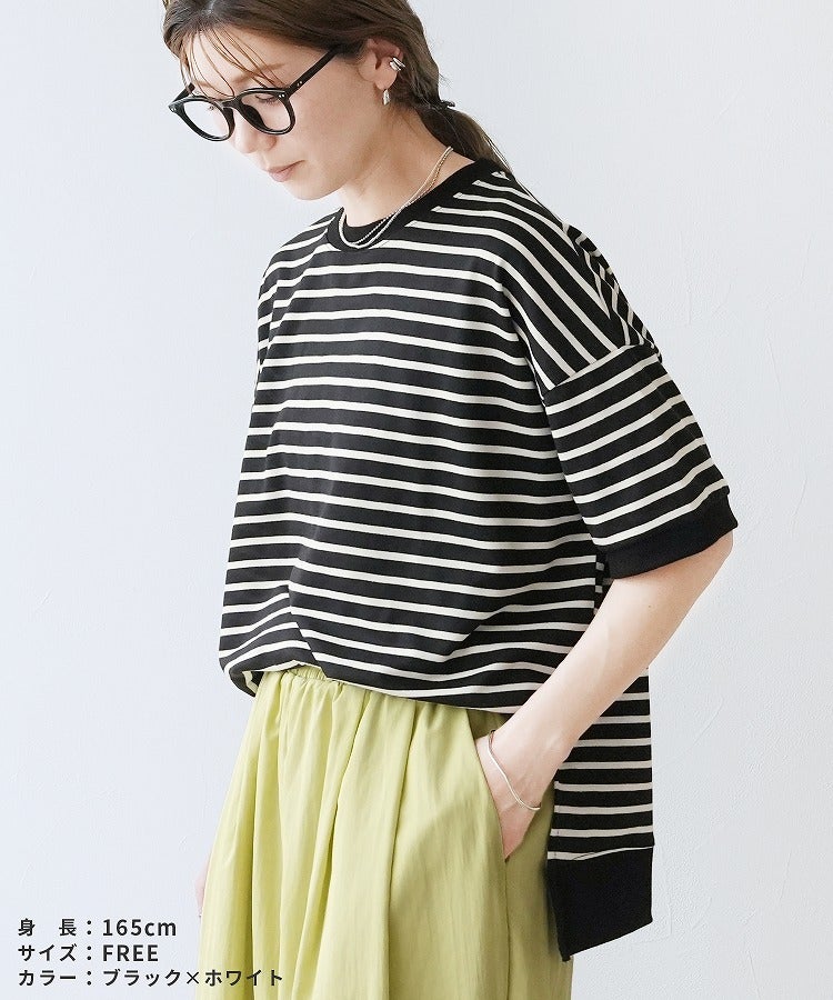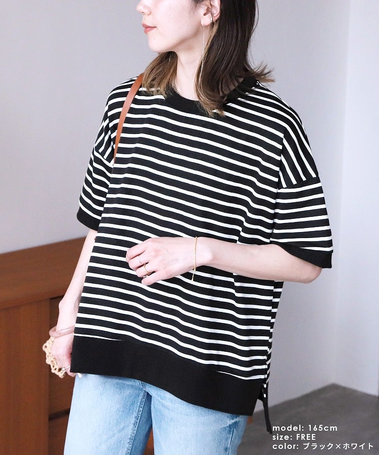 サイドスリットボーダーTシャツ(R22160-v) ネコポス発送10