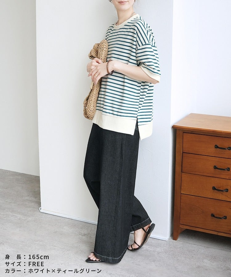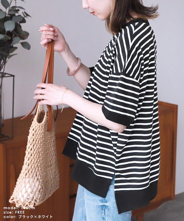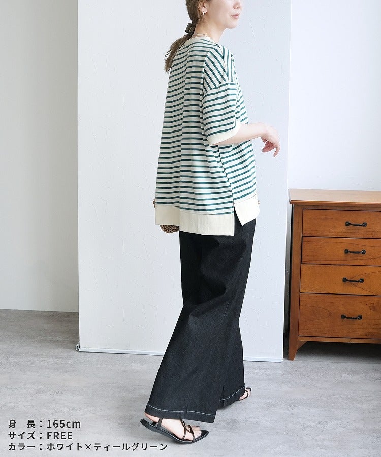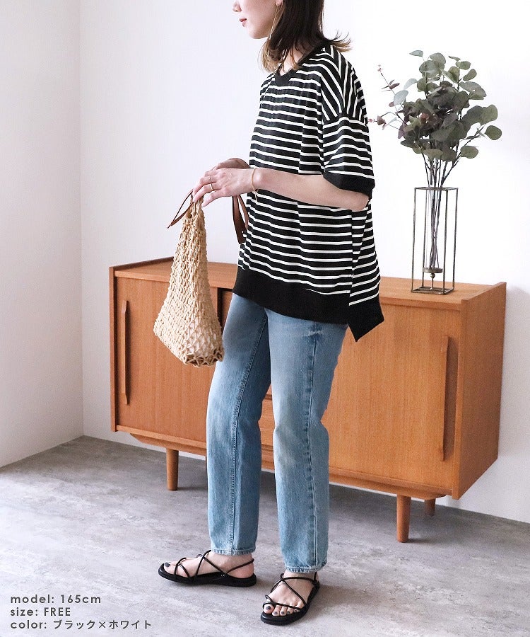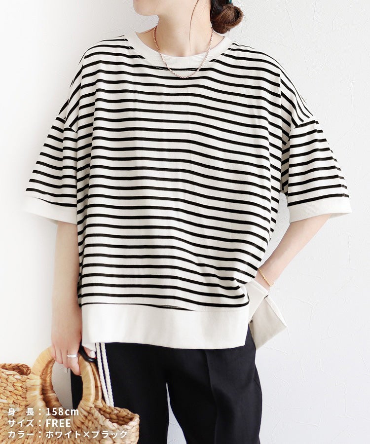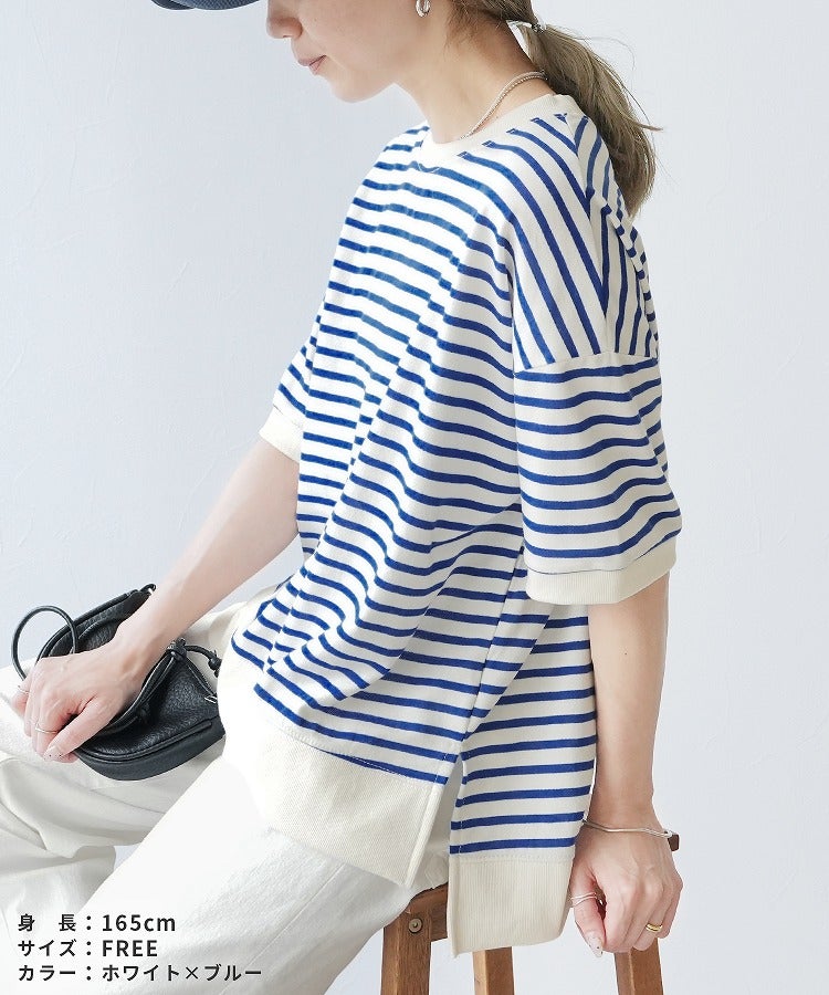 サイドスリットボーダーTシャツ(R22160-v) ネコポス発送10