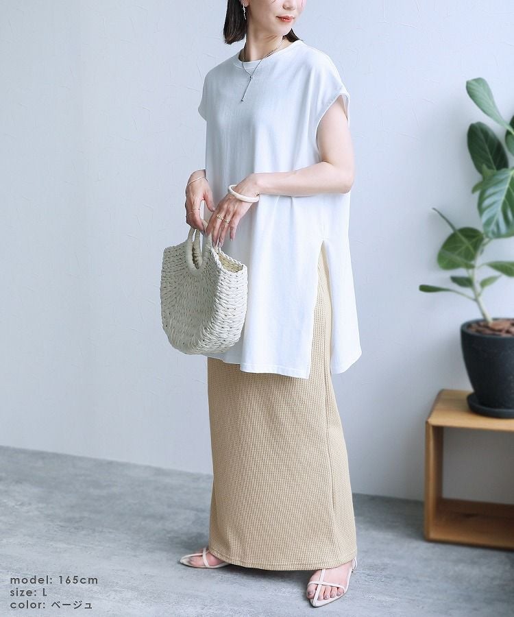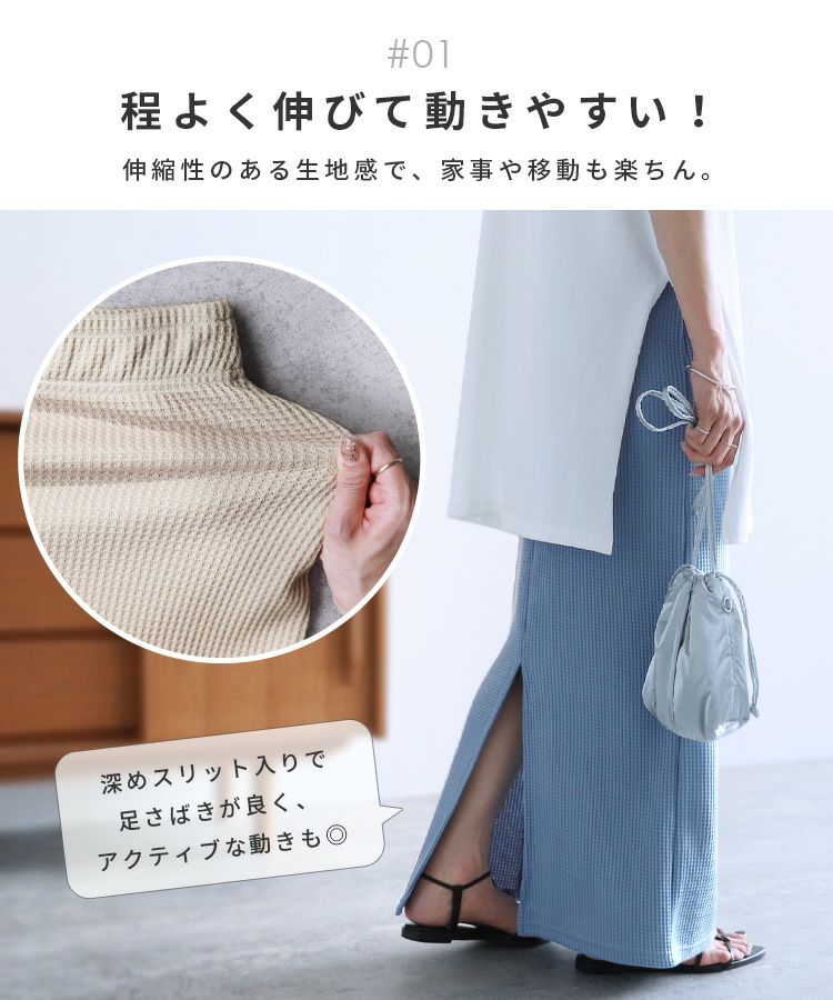 ワッフルロングタイトスカート(R24137-k) ネコポス発送10