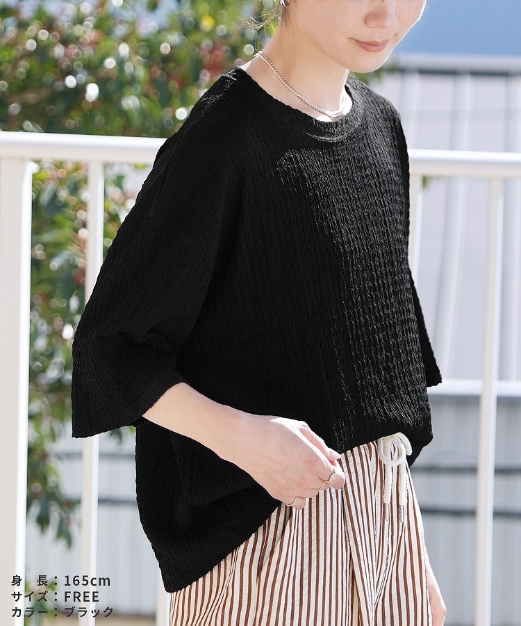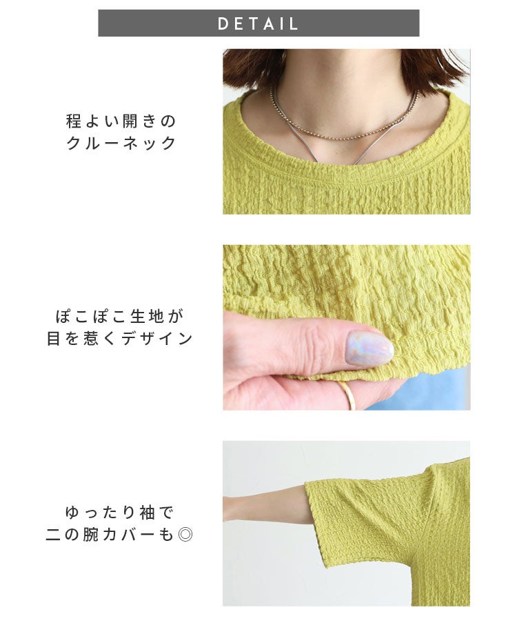 レディース トップス シンプル 透け感 トレンド 凸凹 クルーネック 重ね着 レイヤード 着回し 薄手 伸縮性 ストレッチ 柔らかい 半袖 キレイめ 夏服 無地 シンプル プルオーバー 大人女子 30代ファッション 30代コーデ 40代ファッション 40代コーデ ブラック 黒 ホワイト 白 アクアブルー 水色 ライム 黄色 女性 インナー