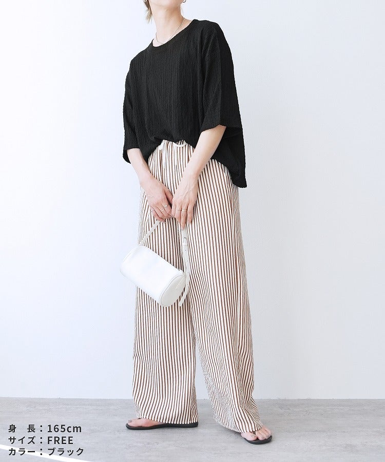 コーデアイテム: 無地/ストライプエンボス加工イージーパンツ