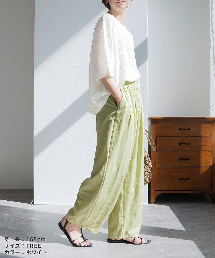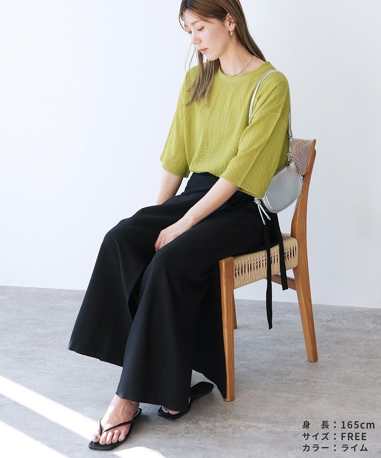コーデアイテム: エンボス加工巻きスカート付きワイドパンツ