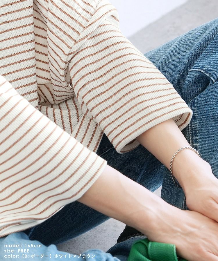 無地/ボーダー柄 ワッフルボックスワイドTシャツ(R25102-k) ネコポス発送10