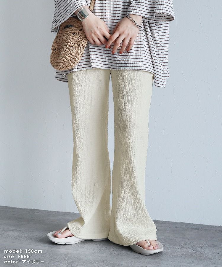 カットシャーリングデザインフレアパンツ(R25104-k) ネコポス発送10