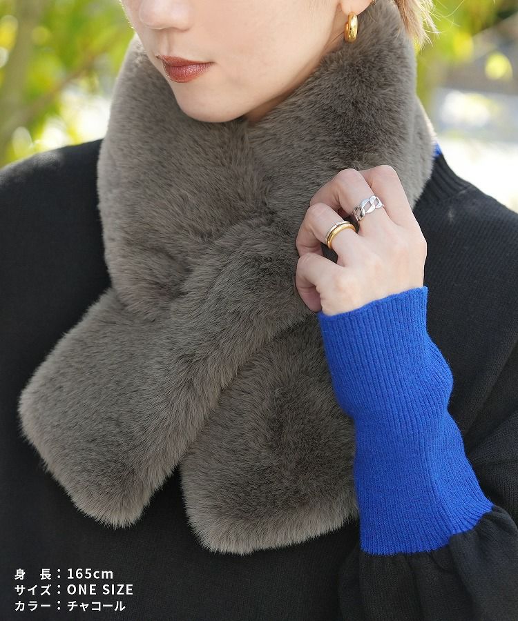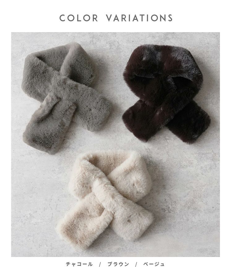 レディース シンプル カジュアル きれいめ フォーマル オフィス マフラー 差し込みマフラー ティペット ふわふわ 防寒 軽量 上品 秋 冬 大人女子 30代ファッション 30代コーデ 40代コーデ 50代コーデ ママ オシャレ ファッション小物 ブラウン ベージュ チャコール