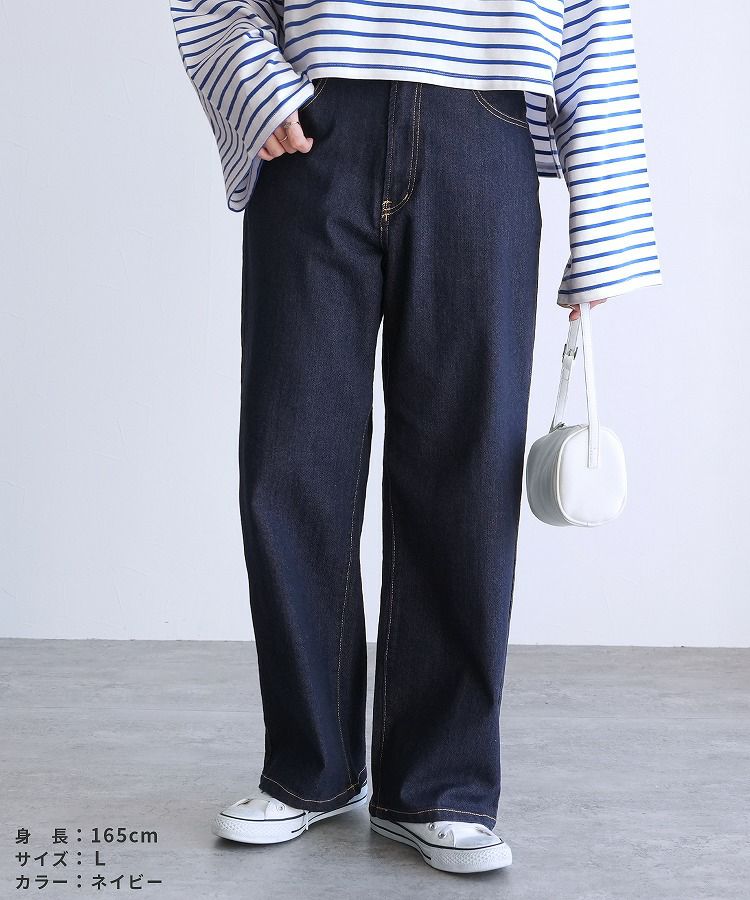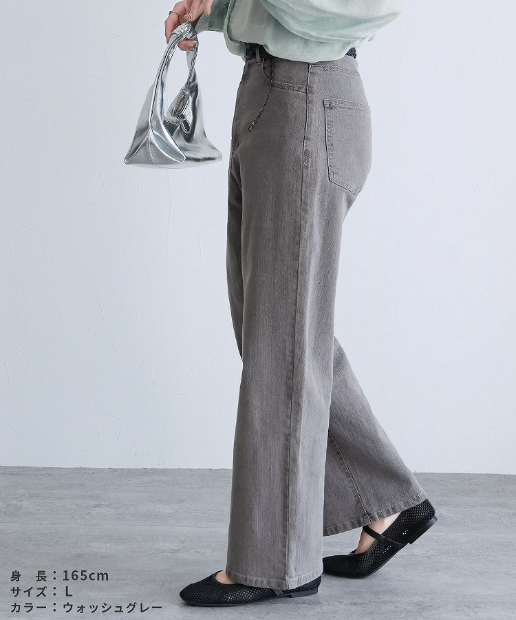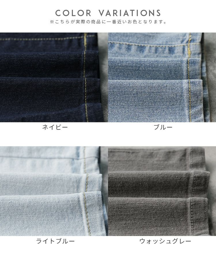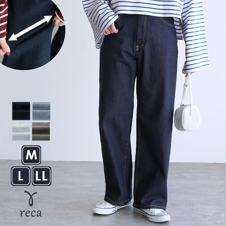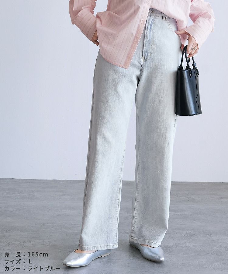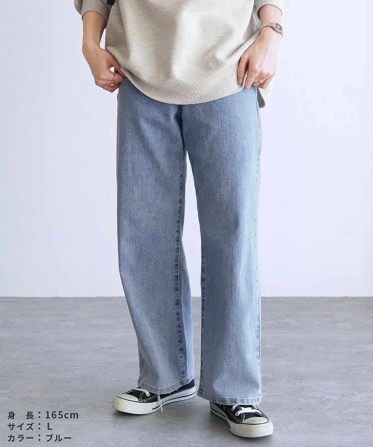 レディース ボトムス パンツ デニム ストレートパンツ ワイドパンツ 薄色デニム ジーンズ ジーパン ウエストゴム 裏ゴム 裏張りゴム 柔らかい ストレッチ 伸縮性 薄手 ポケット シンプル カジュアル 大人女子 30代ファッション 30代コーデ コットン 綿 ブルー 水色 ネイビー 紺色 グレー オールシーズン