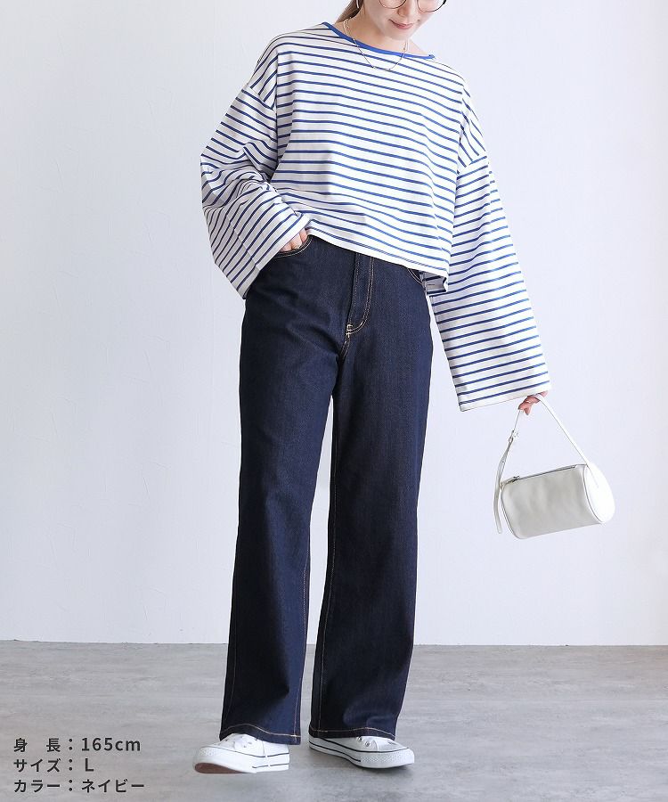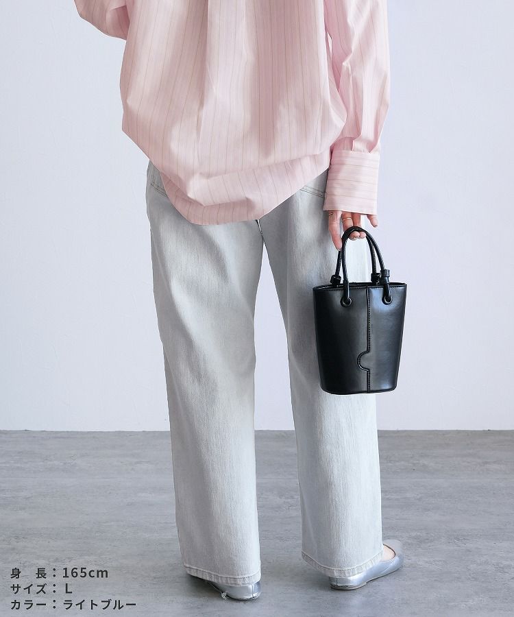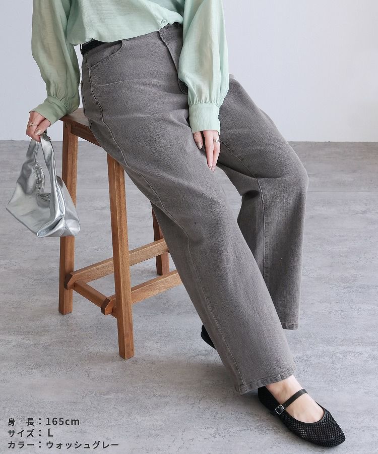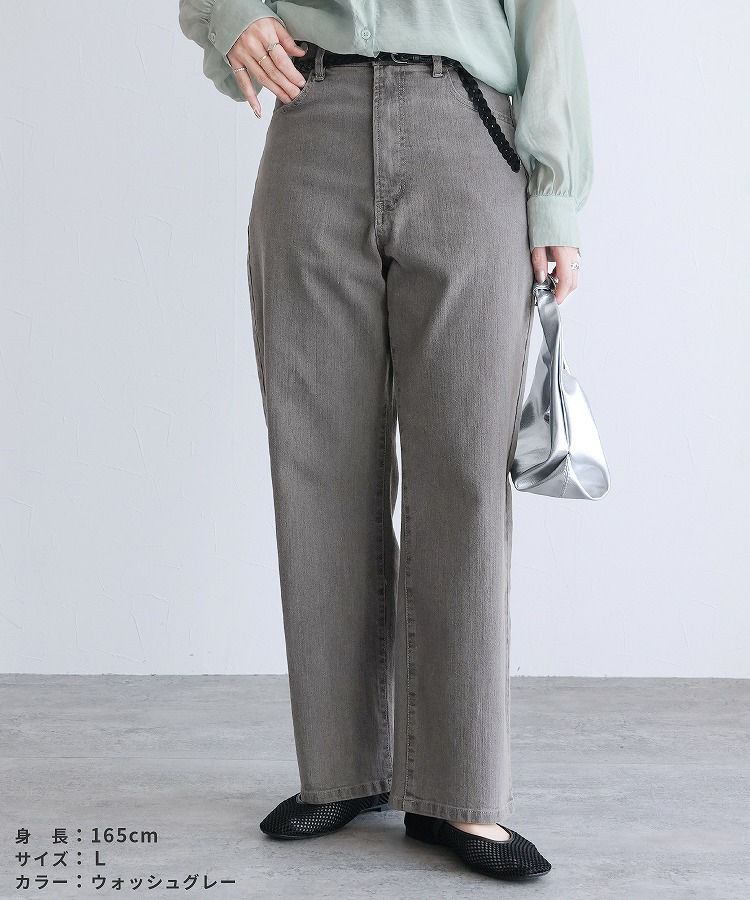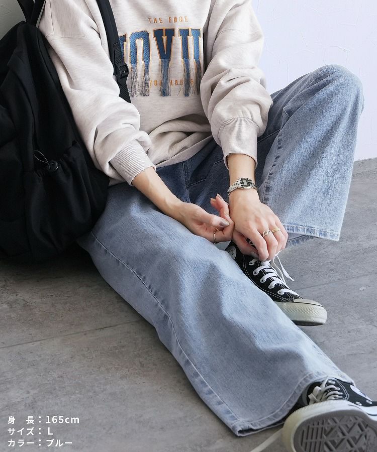 レディース ボトムス パンツ デニム ストレートパンツ ワイドパンツ 薄色デニム ジーンズ ジーパン ウエストゴム 裏ゴム 裏張りゴム 柔らかい ストレッチ 伸縮性 薄手 ポケット シンプル カジュアル 大人女子 30代ファッション 30代コーデ コットン 綿 ブルー 水色 ネイビー 紺色 グレー オールシーズン