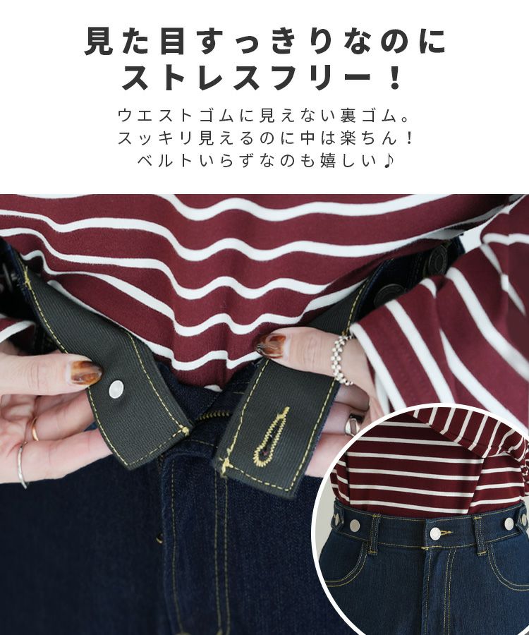 飾り釦付き裏ゴムストレートデニムパンツ(sat-e-5060) ネコポス発送10