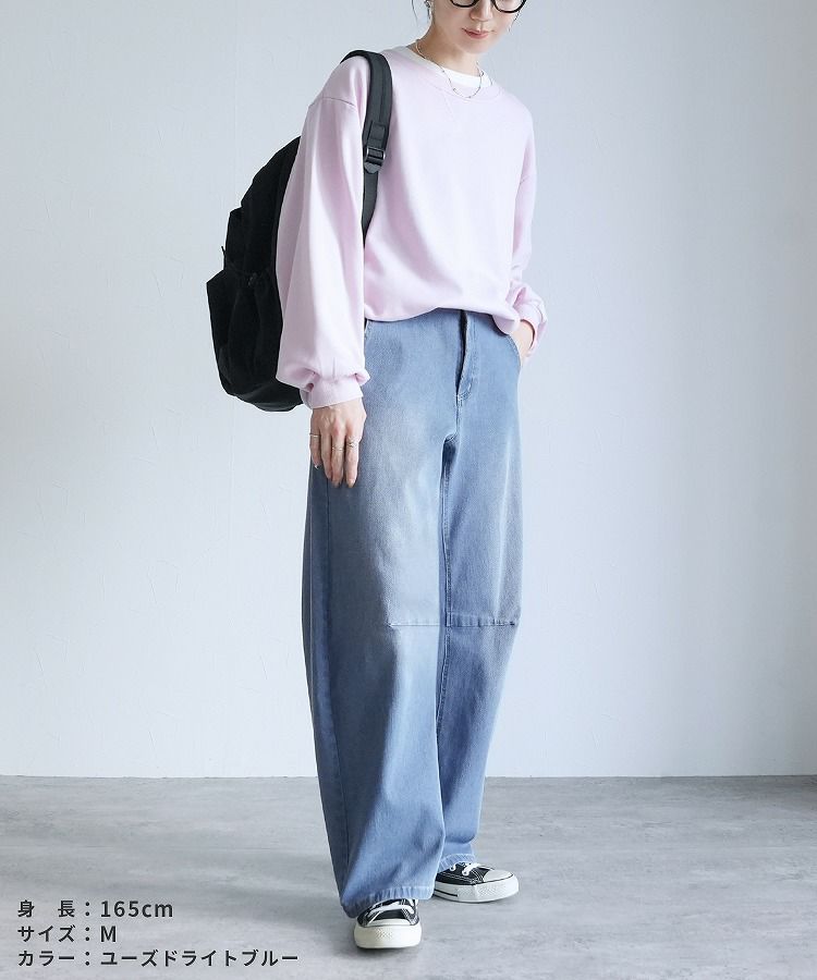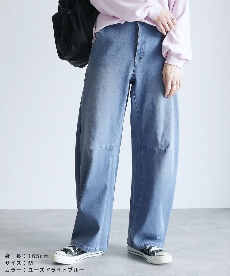 レディース ボトムス パンツ デニム デニムパンツ カーブシルエット ワイドパンツ ワイドデニム ストレッチパンツ 薄色デニム ジーンズ ジーパン ウエストゴム バッグゴム 柔らかい ストレッチ 伸縮性 薄手 ポケット シンプル カジュアル 大人女子 30代ファッション 30代コーデ コットン 綿 ブルー ネイビー 紺色 グレー オールシーズン M L LL 大きいサイズ ゆったり 楽ちん 履きやすい 伸びる 通気性