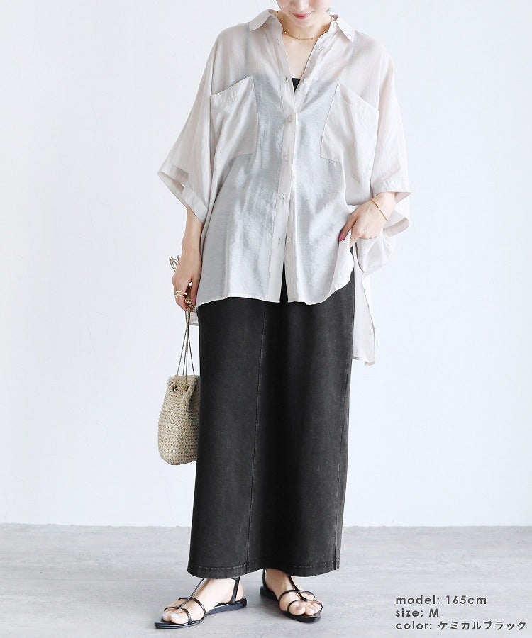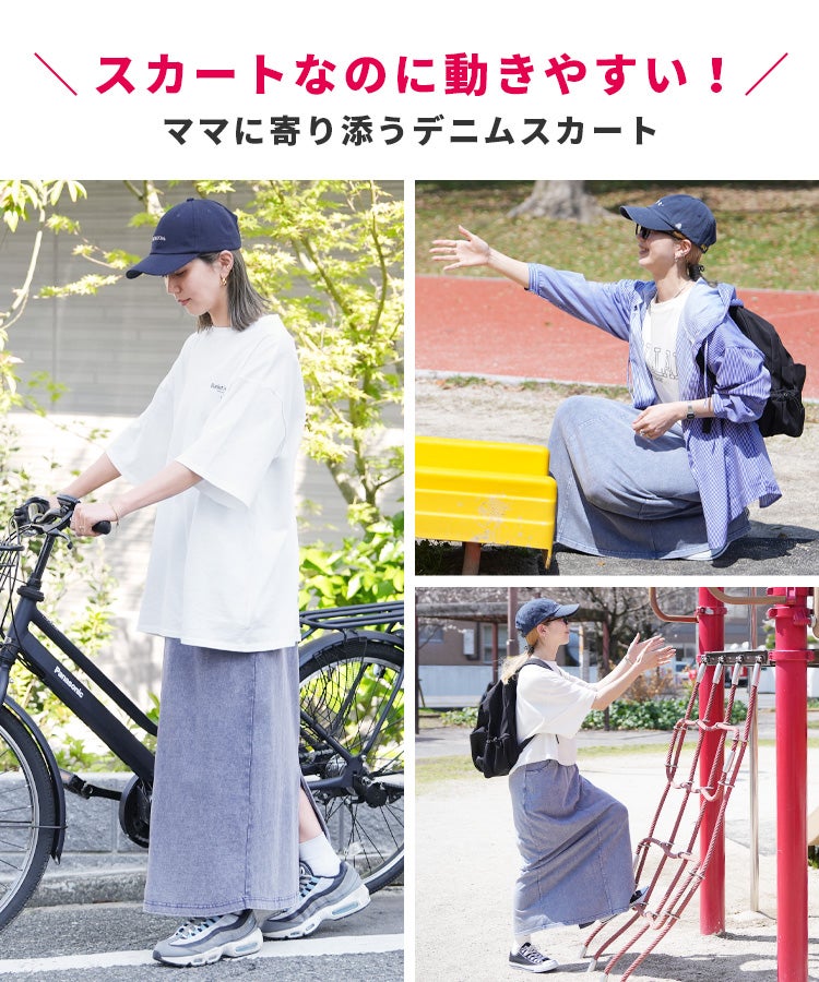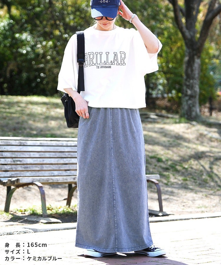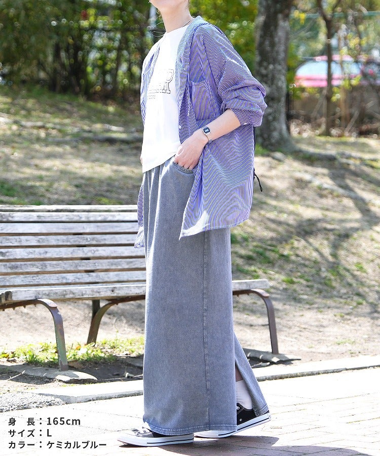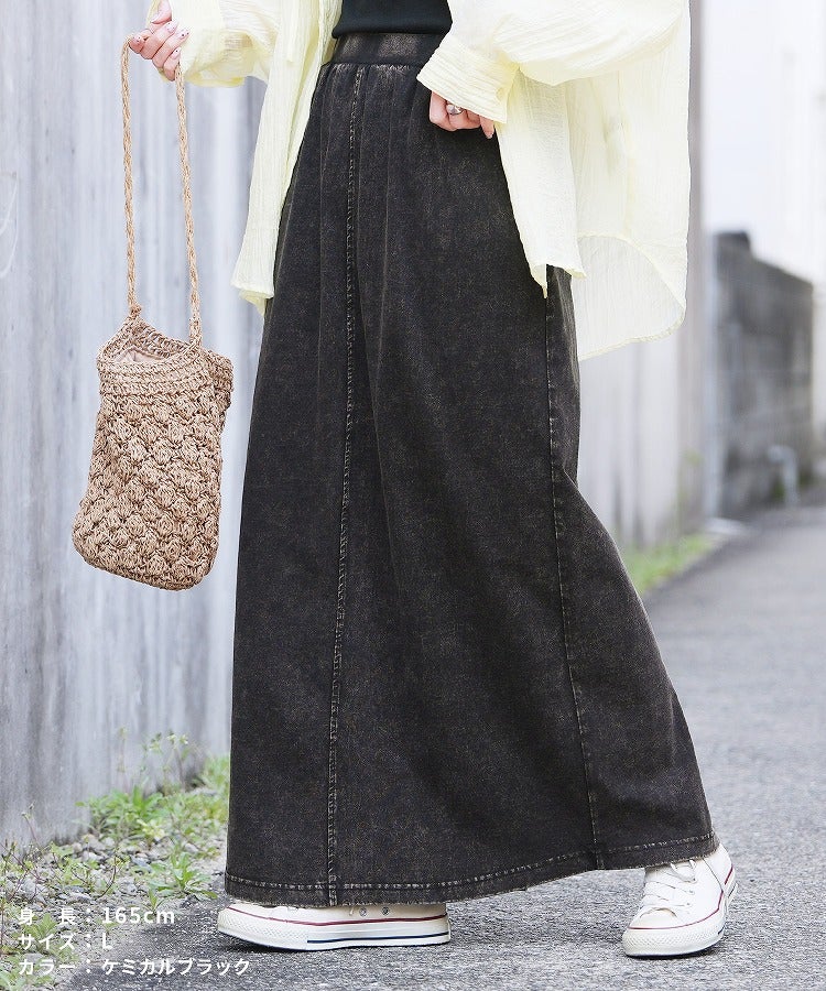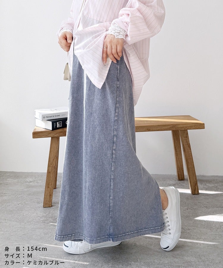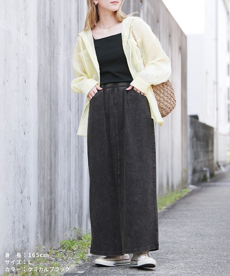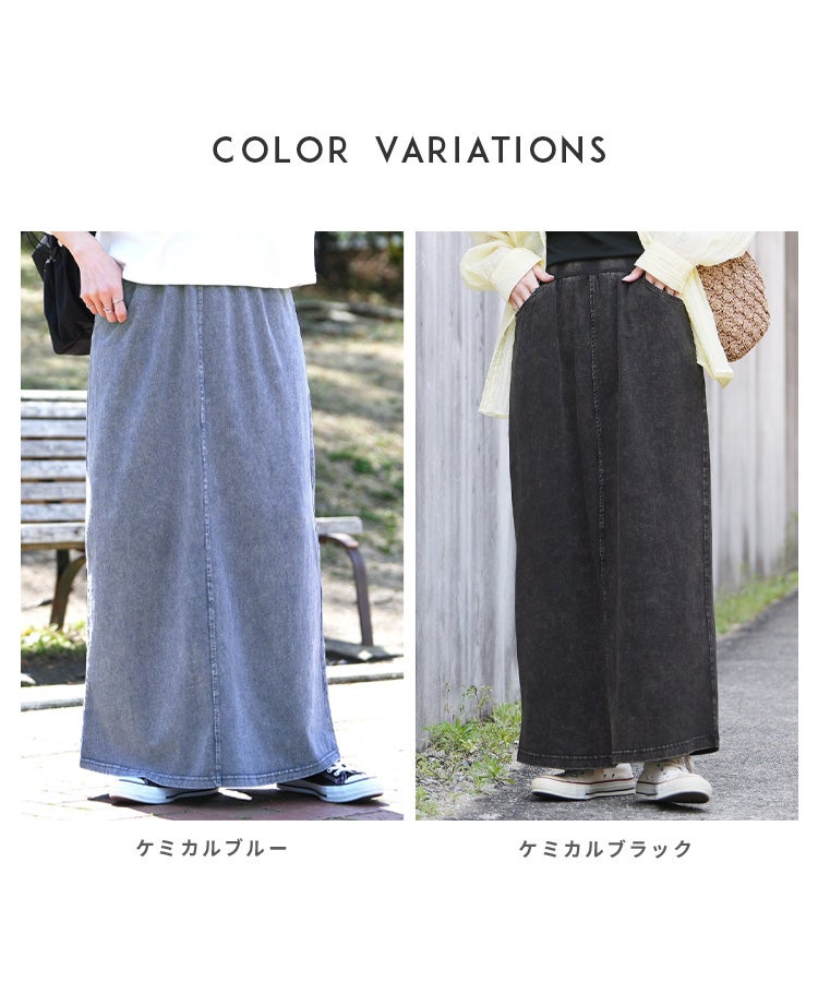 レディース 2025年夏新作 ボトムス スカート ロングスカート デニム ストレッチ 伸縮性 ポケット ウエストゴム スリット コットン 動きやすい カジュアル シンプル 楽ちん 夏 大人女子 30代ファッション 30代コーデ ケミカルブルー ケミカルブラック