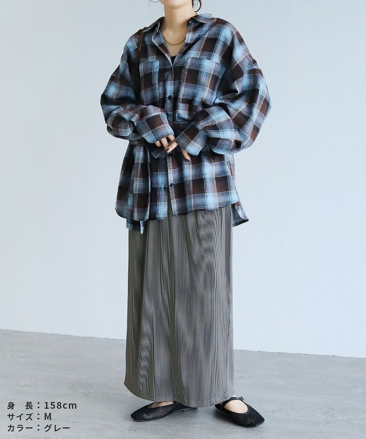 コーデアイテム: ボウタイ付きチェック柄オーバーサイズシャツ