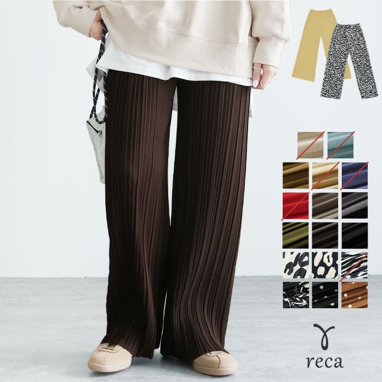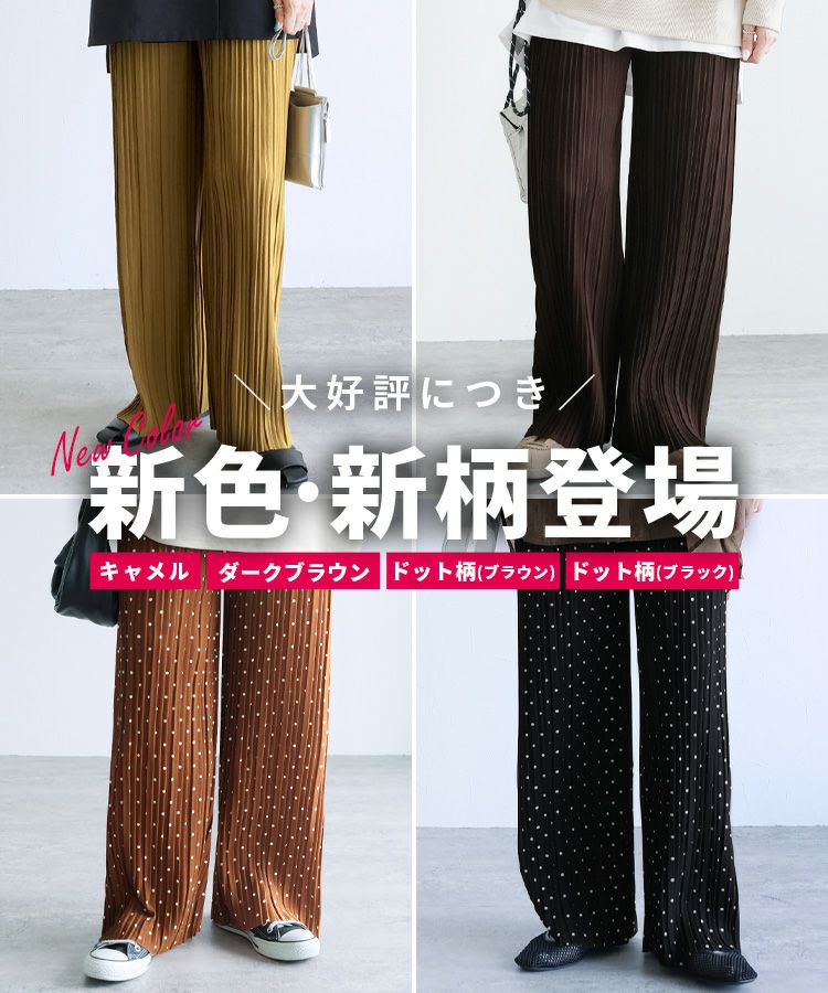レディース ボトムス ロング ウエストゴム 楽ちん イージーパンツ 無地 プリーツ ランダムプリーツ リラックスパンツ キレイめ カジュアル 高見え 華やか 秋 大人女子 30代ファッション 30代コーデ ママコーデ トレンドコーデ くすみカラー スモーキーピンク グレージュ イエロー ライトグリーン ブラック 黒