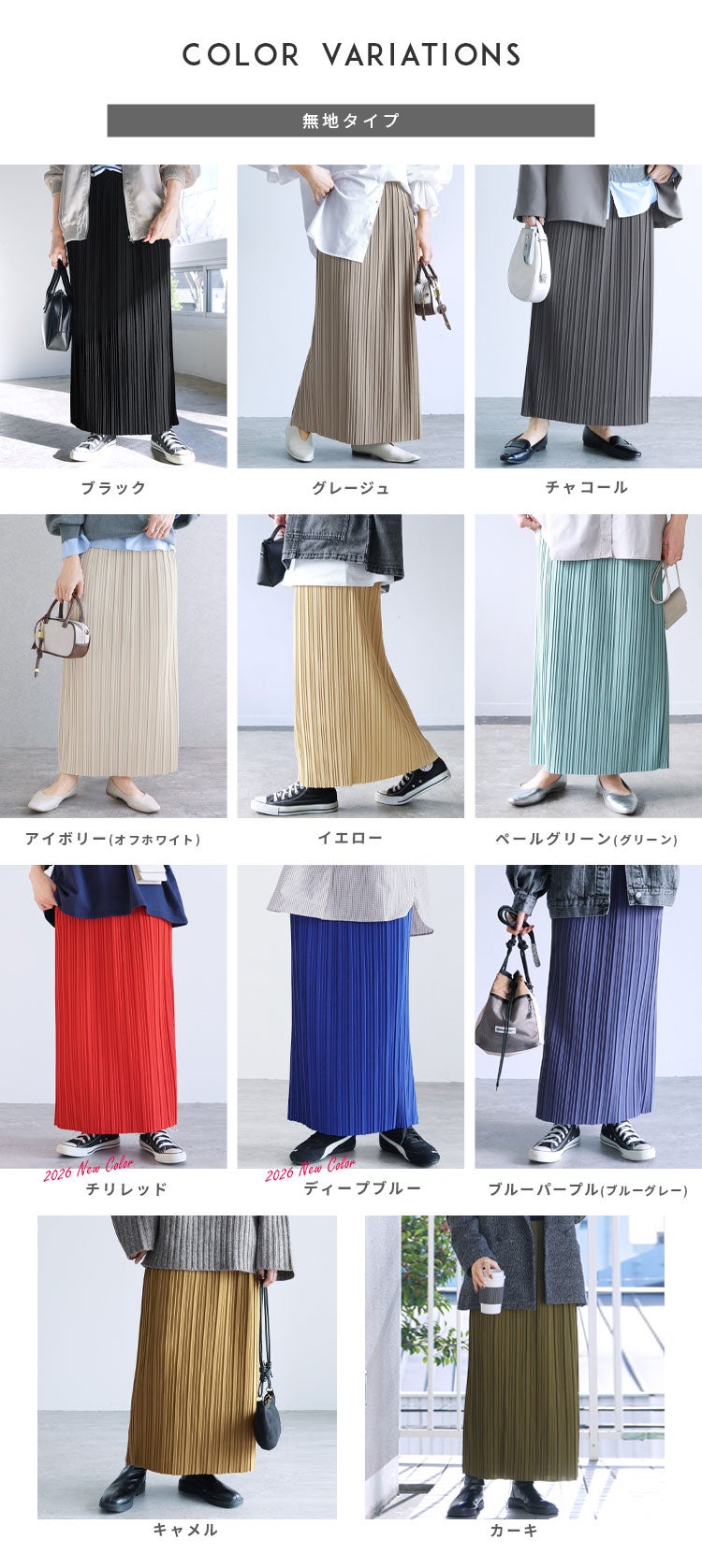 下半身カバー  レディース ボトムス スカート プリーツスカート プリーツ ロング ロング丈 ロングスカート ウエストゴム 楽ちん ギャザースカート 無地 プリーツ ランダムプリーツ リラックススカート キレイめ カジュアル 高見え 華やか 秋 大人女子 30代ファッション 30代コーデ 40代ファッション 40代コーデ ママコーデ トレンドコーデ くすみカラー ライトグリーン グレージュ イエロー 黄 ブラック 黒 春 夏 スプリング