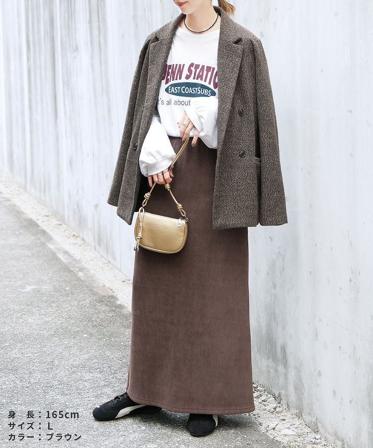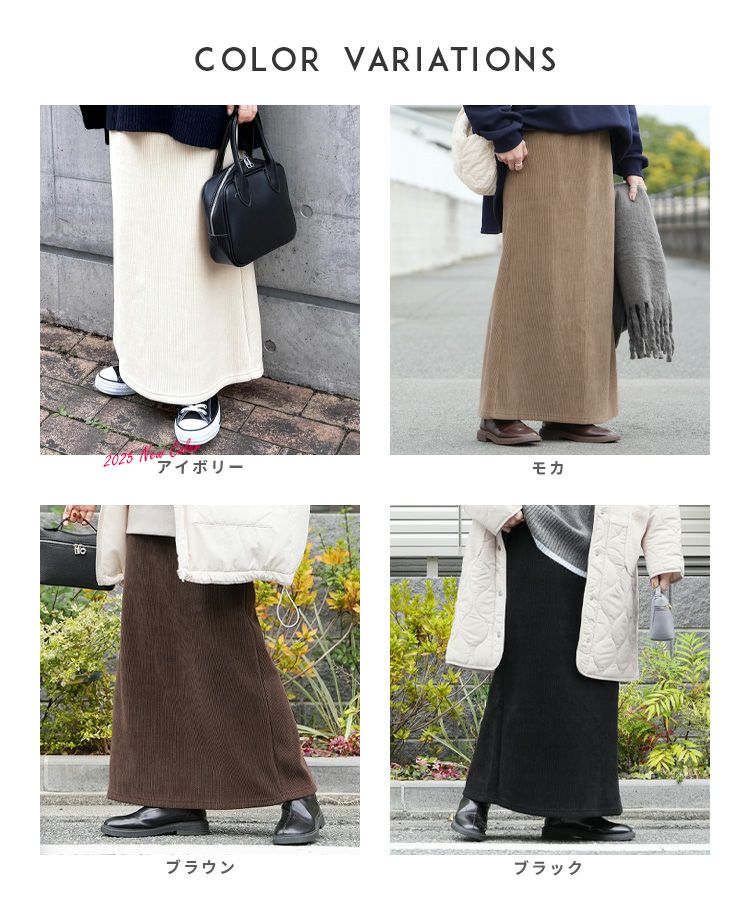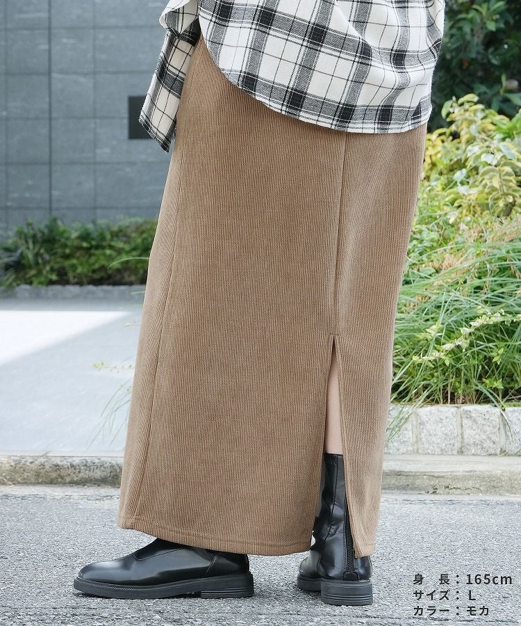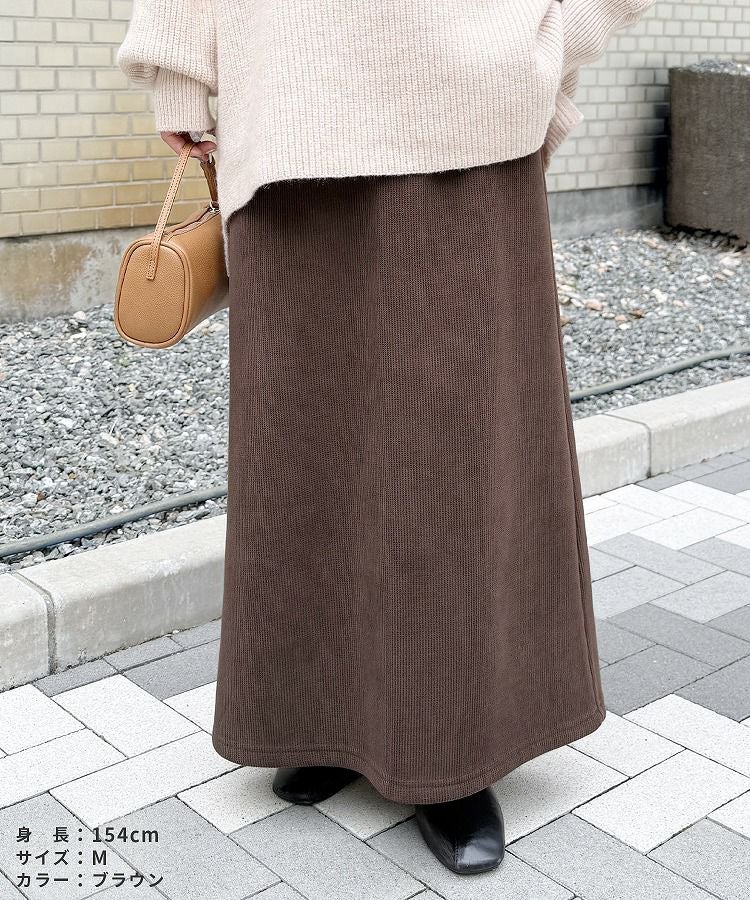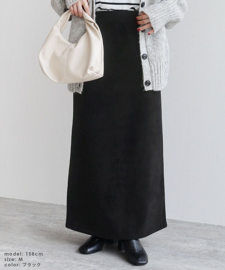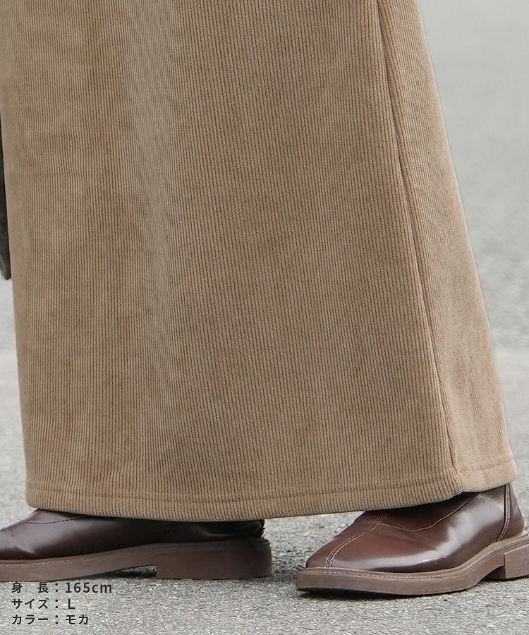 レディース ボトムス スカート タイトスカート ナロースカート ロングスカート 裏フリース 裏起毛 ウエストゴム ポケット ボンディング カジュアル シンプル 楽ちん コーデュロイ 暖かい あったか あたたかい 防寒 秋 冬 大人女子 30代ファッション 30代コーデ モカ ブラウン ブラック 黒