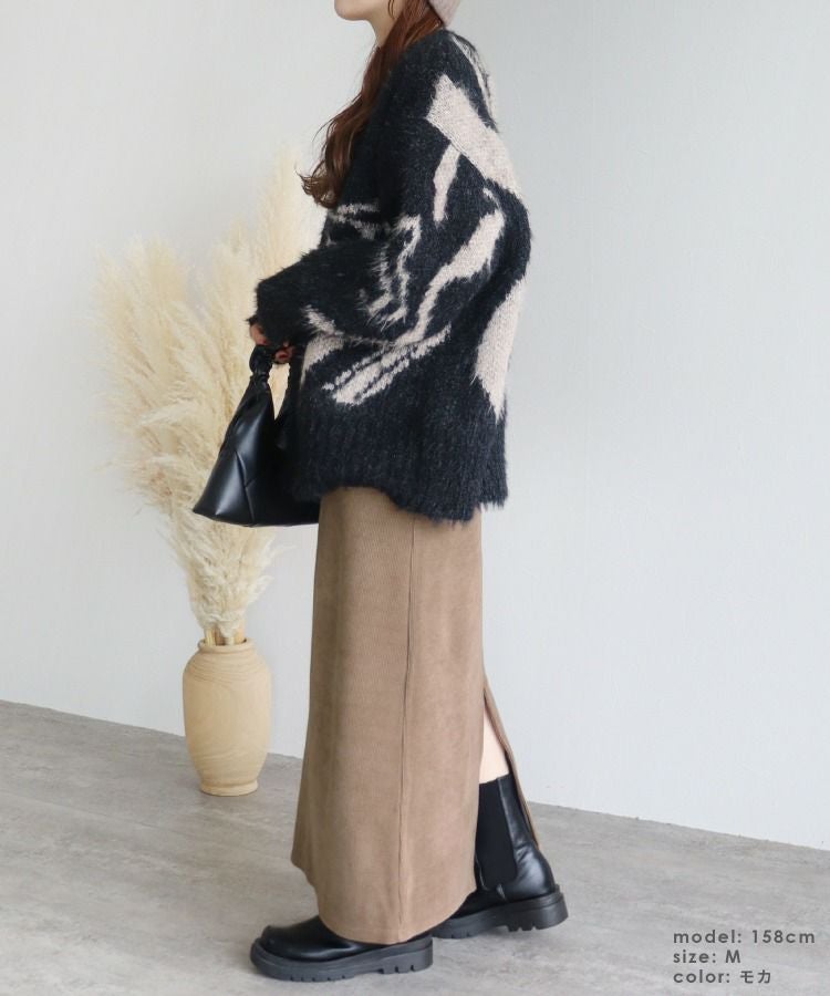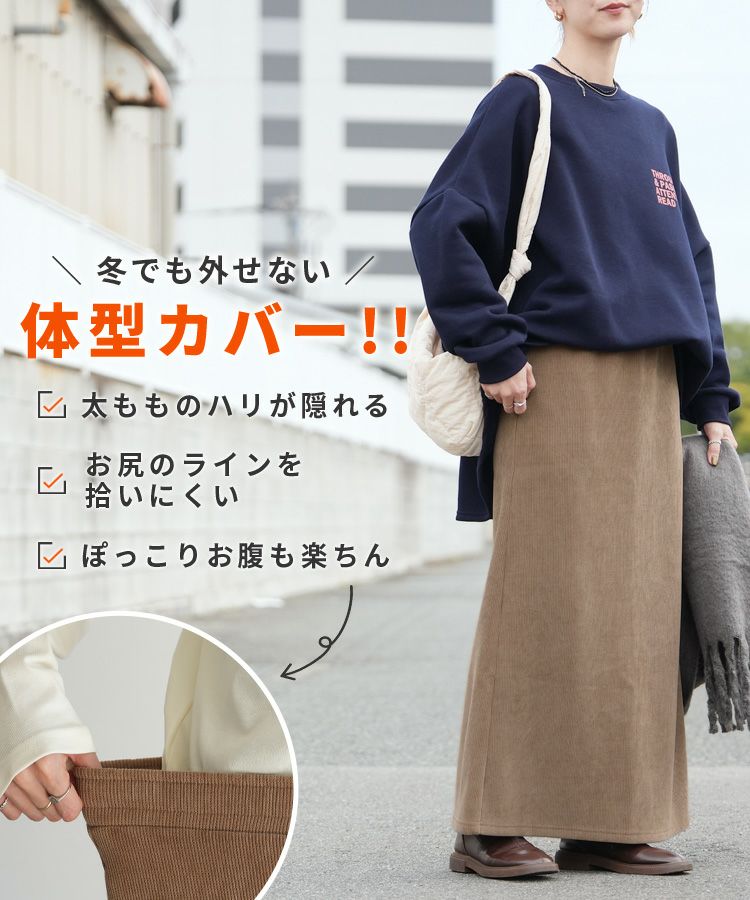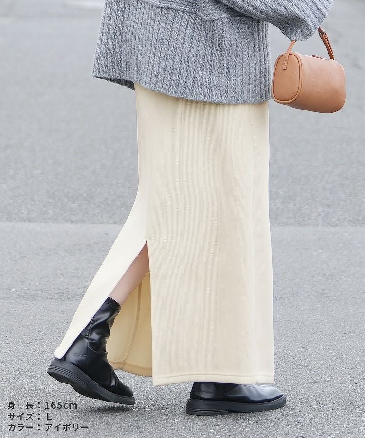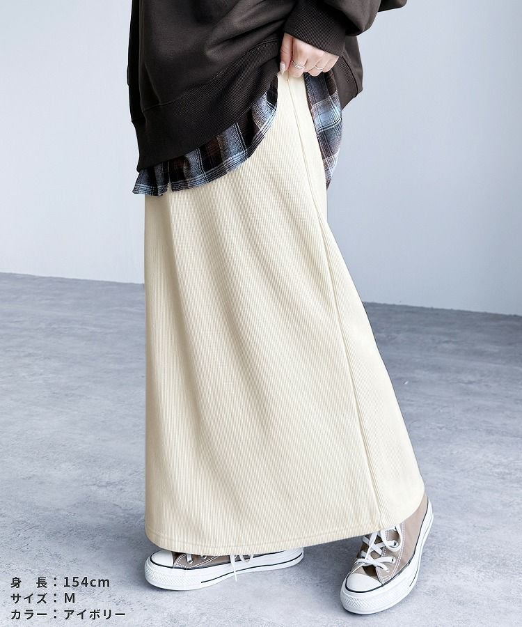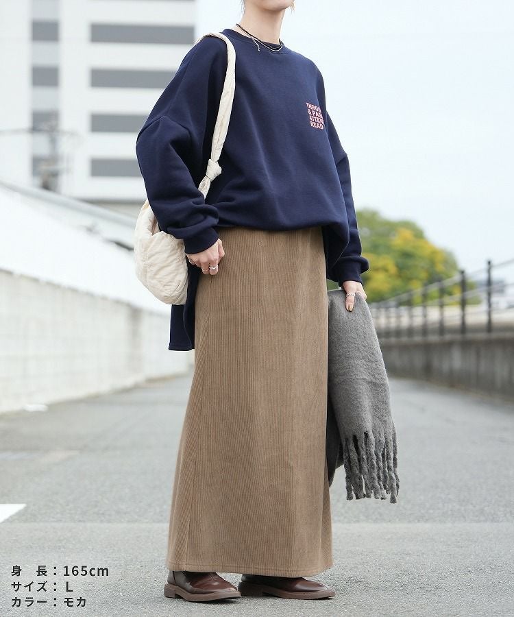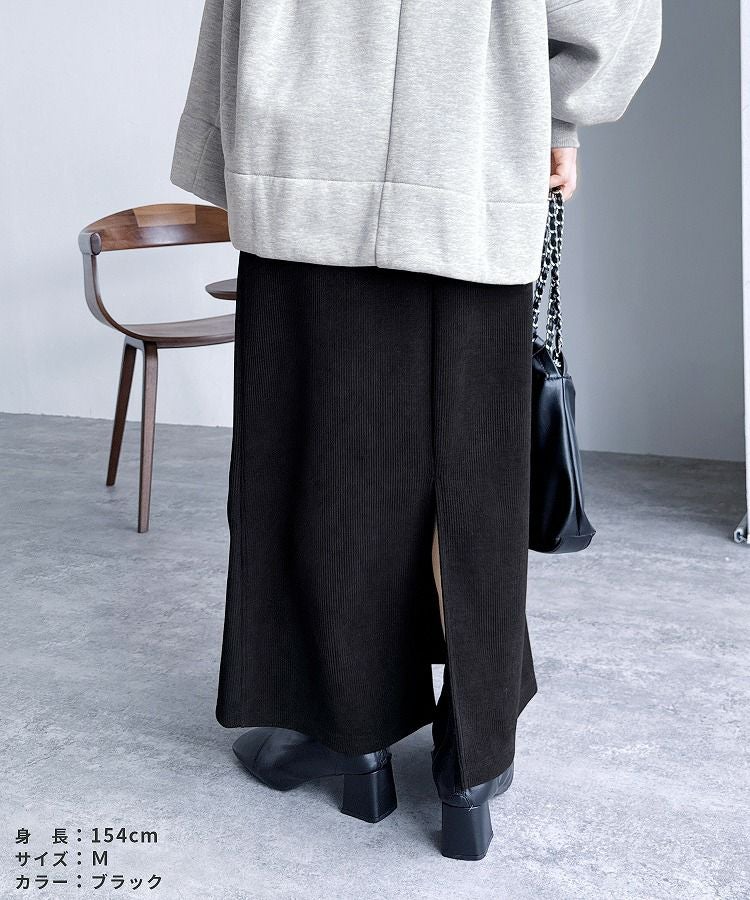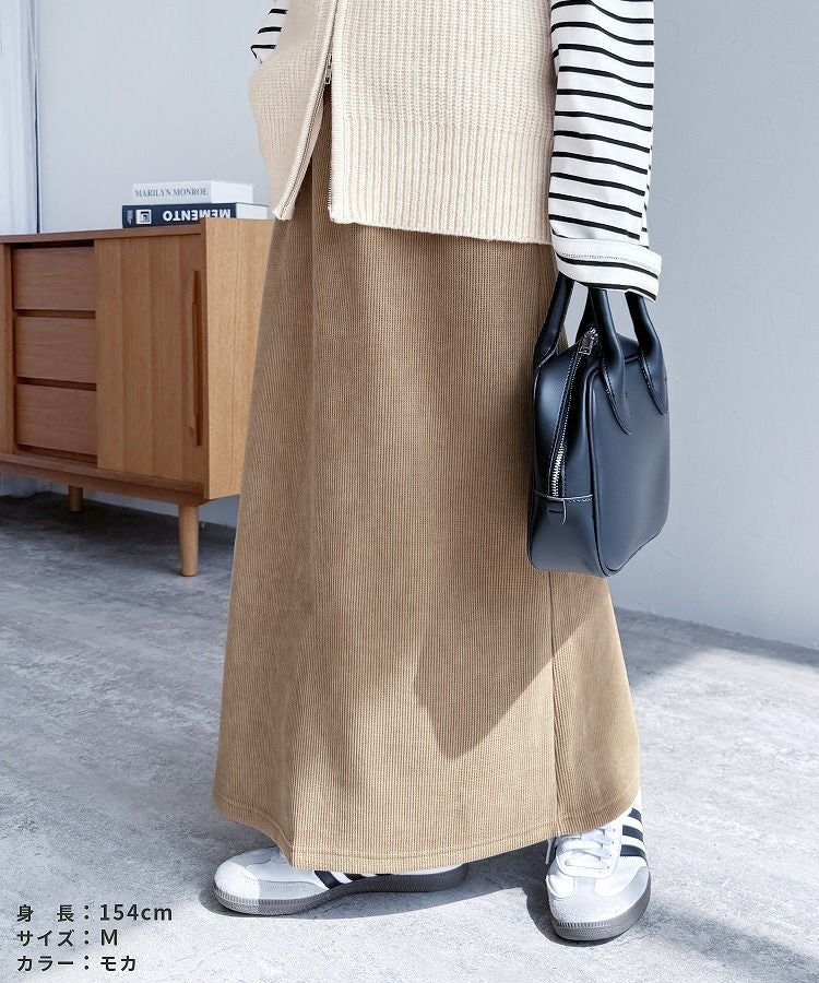 レディース ボトムス スカート タイトスカート ナロースカート ロングスカート 裏フリース 裏起毛 ウエストゴム ポケット ボンディング カジュアル シンプル 楽ちん コーデュロイ 暖かい あったか あたたかい 防寒 秋 冬 大人女子 30代ファッション 30代コーデ モカ ブラウン ブラック 黒