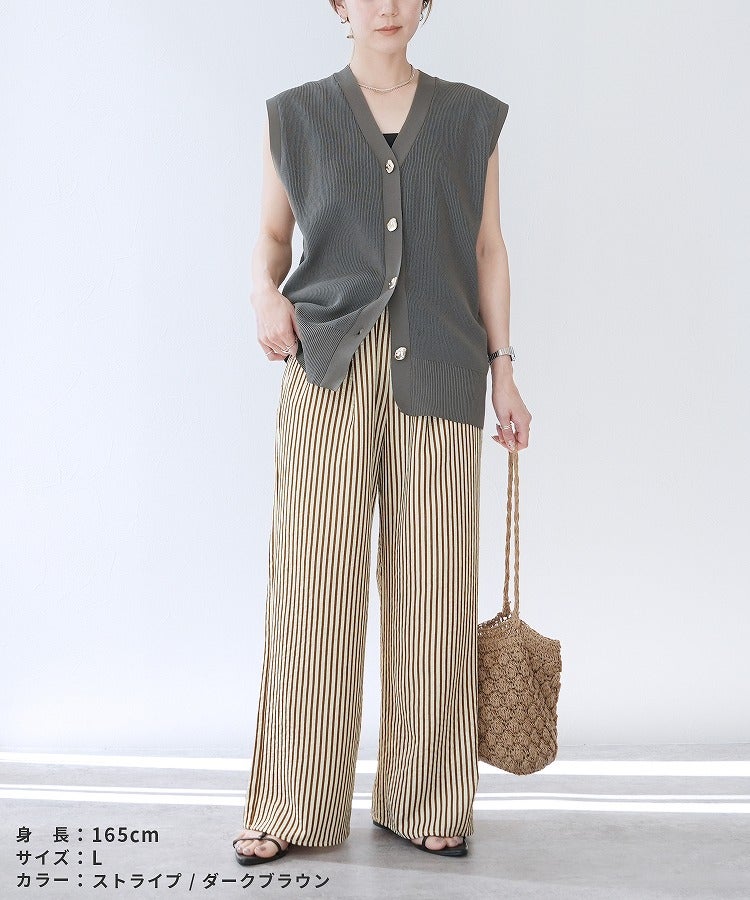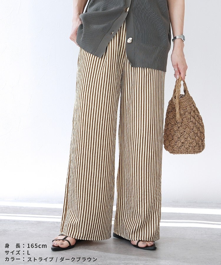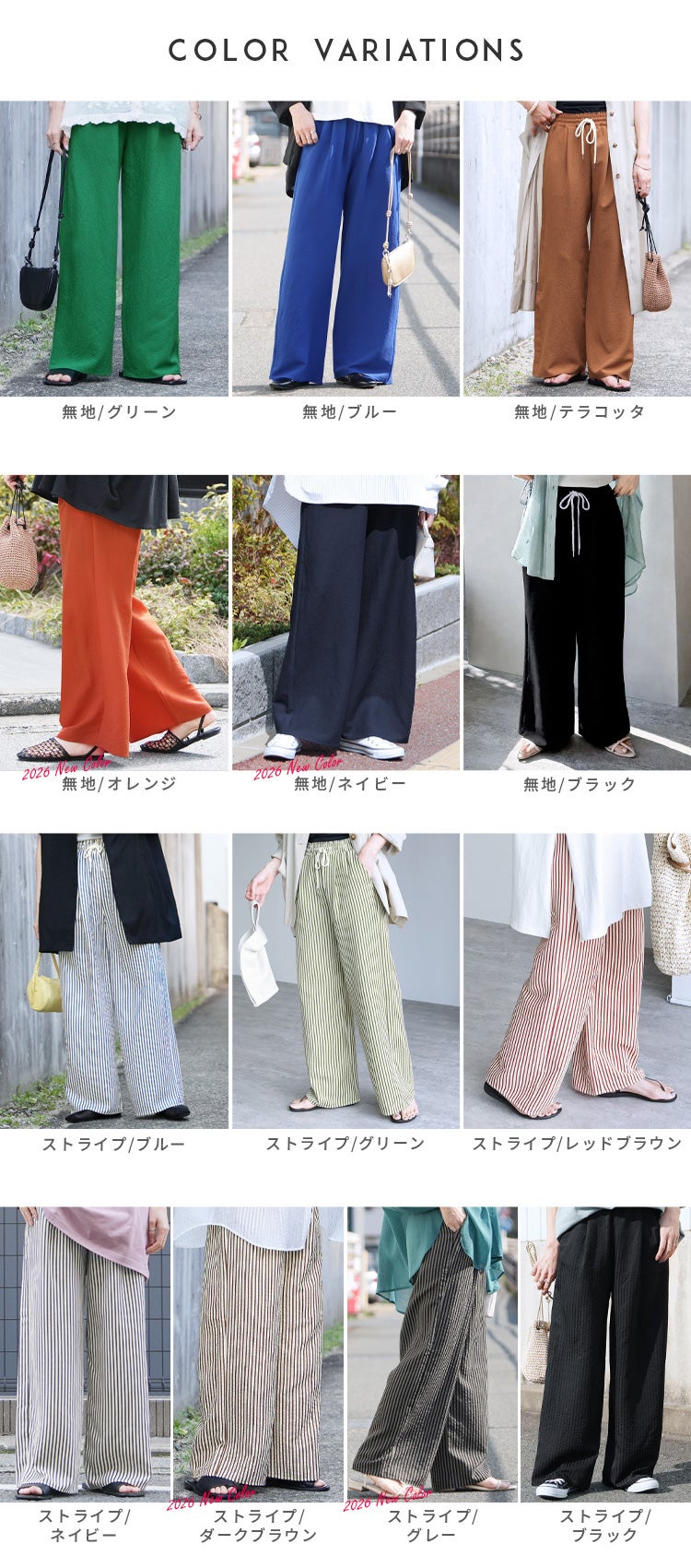 レディース 2025年夏新作 ボトムス パンツ イージー ワイドパンツ ウエストゴム ハイウエスト ポケット カジュアル シンプル 楽ちん 夏 大人女子 30代ファッション 30代コーデ 無地 柄 ストライプ グリーン 緑 ブルー 青 テラコッタ ブラック 黒 ネイビー ストライプブルー ストライプネイビー