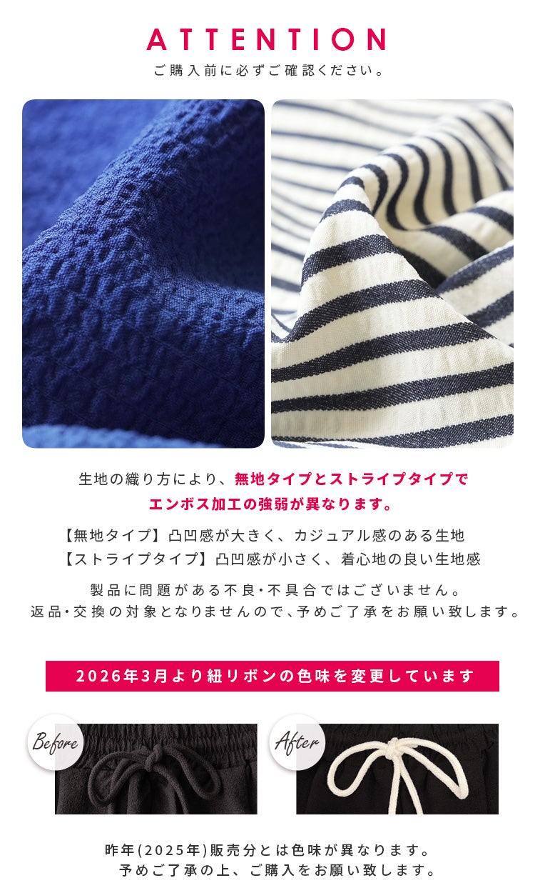 【タイムセール】無地/ストライプエンボス加工イージーパンツ(y2819・y2818) ネコポス発送10