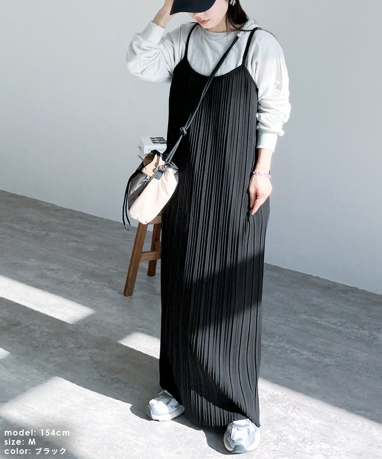 レディース ワンピース ワンピ プリーツワンピ プリーツワンピース ランダムプリーツ プリーツ プルオーバー 立体感 縦長 Iライン スタイルアップ キャミ キャミワンピ キャミワンピ―ス きれいめ カジュアル キレカジ シンプル 大人女子 30代ファッション 30代コーデ 無地 柄 ゼブラ グレージュ グレーベージュ ブラック 黒