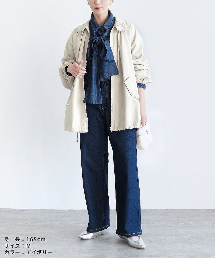 コーデアイテム: 飾り釦付き裏ゴムストレートデニムパンツ