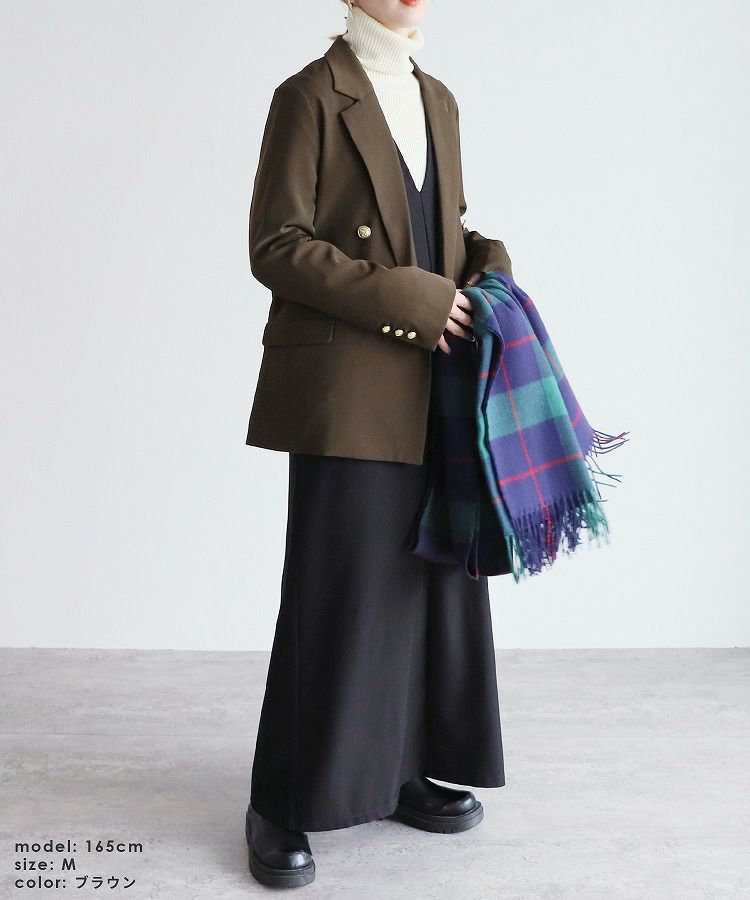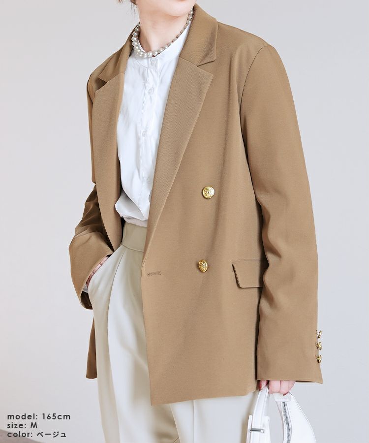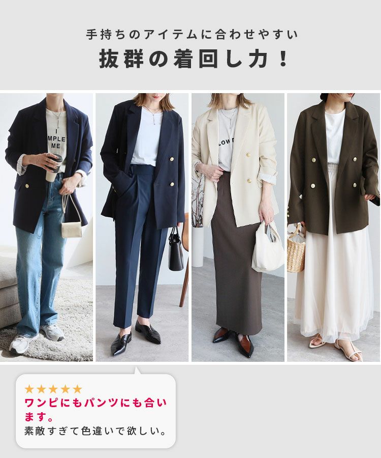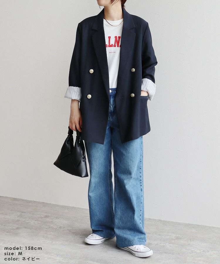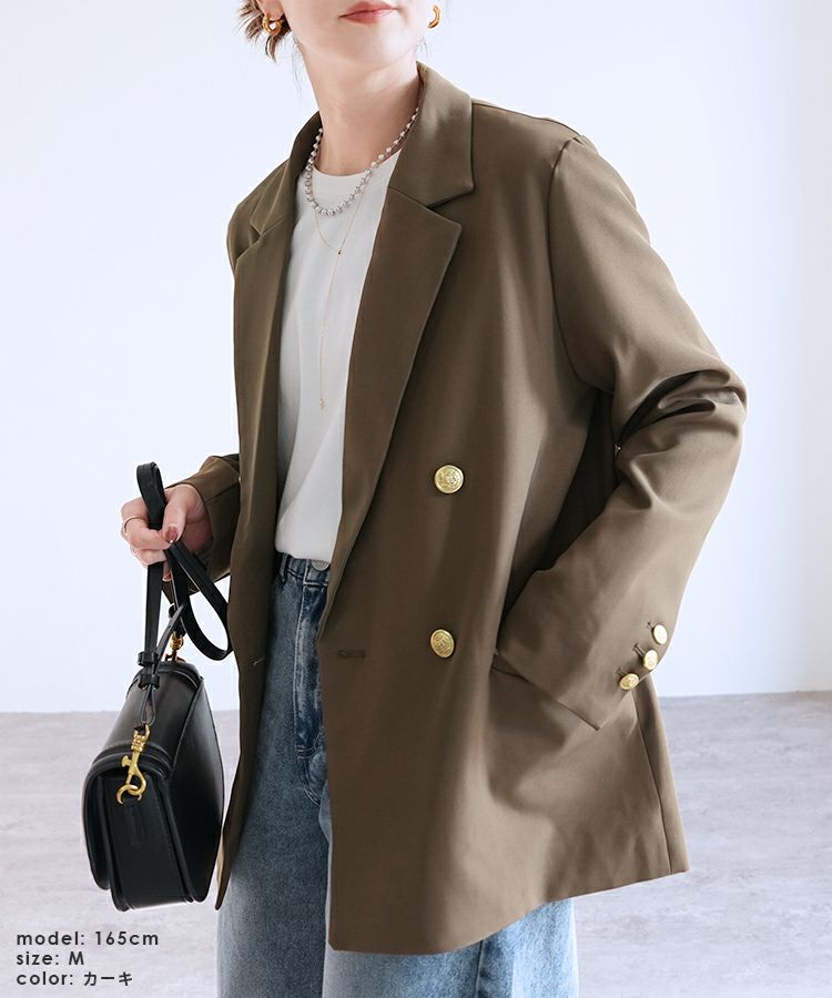 レディース アウター ダブルジャケット 長袖 ミドル ツイル 裏地付き ゆったり 大きめ ポケット ボタン 金ボタン カジュアル シンプル キレイめ オーバーサイズ 大人女子 30代ファッション 30代コーデ 40代ファッション 40代コーデ ネイビー 紺