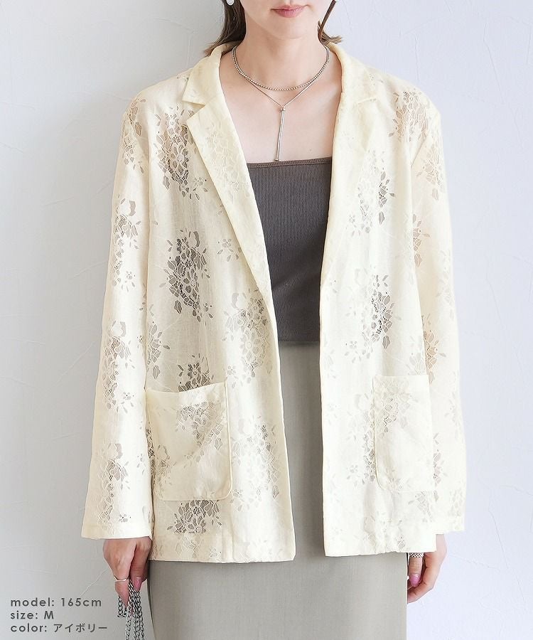 レディース アウター ジャケット テーラード テーラードジャケット シアー 透け感 レース 総レース 前開き 羽織 袖口スリット レイヤード 体型カバー こなれ感 抜け感 抜け 長袖 ポケット付き ポケット きれいめ カジュアル キレカジ オフィス 通勤服 シンプル オケージョン きちんとコーデ ママコーデ 大人女子 30代ファッション 30代コーデ アイボリー ホワイト 白 ブラック 黒