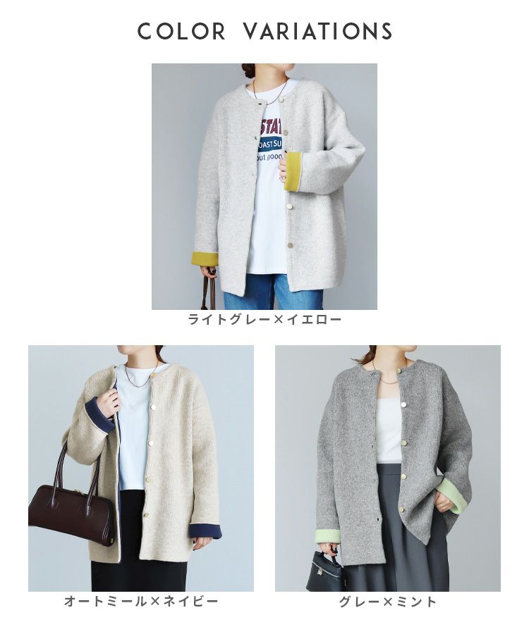 配色デザインダブルフェイスニットカーディガン(aq24131005) 宅配便発送