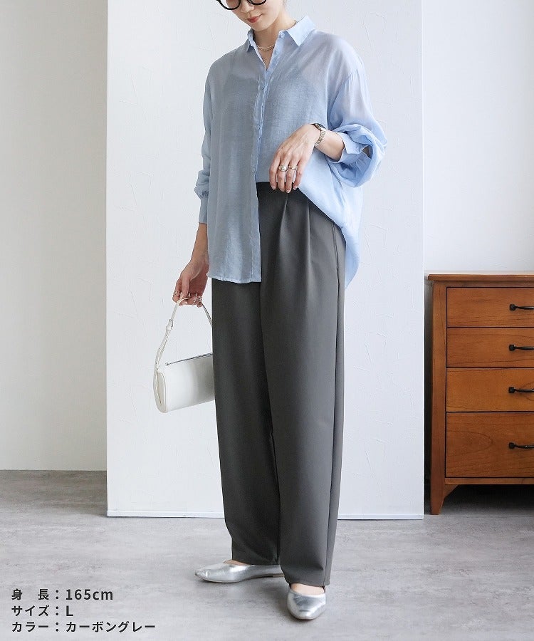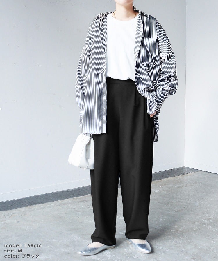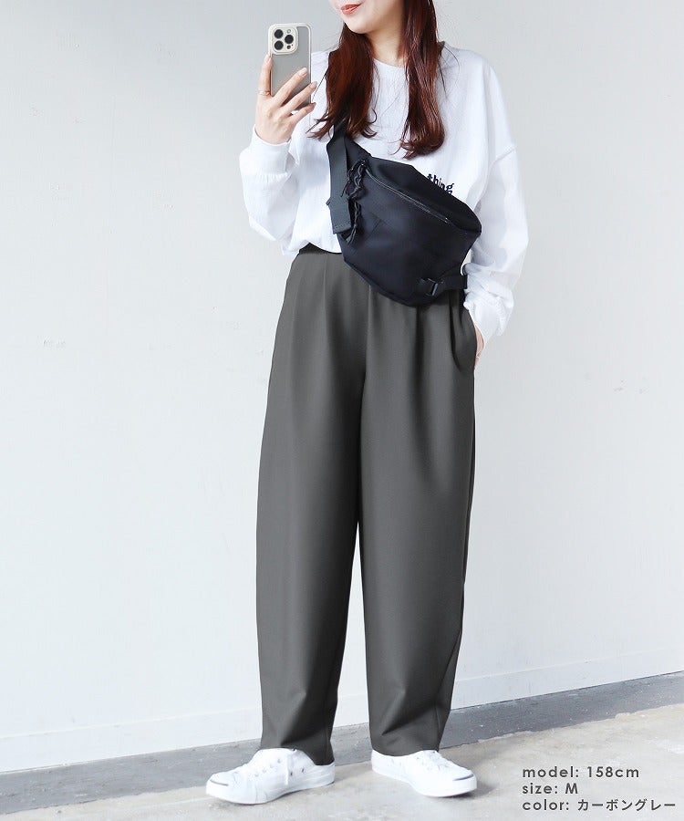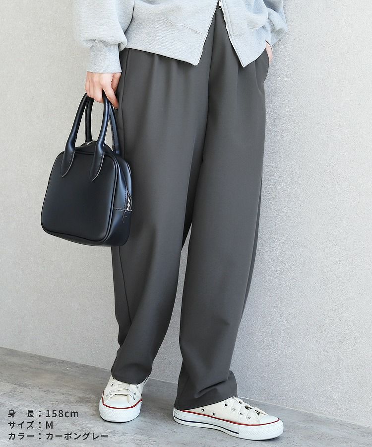 レディース ボトムス パンツ カーブパンツ タック ツータック セミワイド ツイル 細見 すっきり 落ち感 ウエストバックゴム カジュアル きれいめ シンプル 大人女子 30代ファッション 30代コーデ 着回し 楽ちん 無地 ブラック 黒 ブラウン グレー